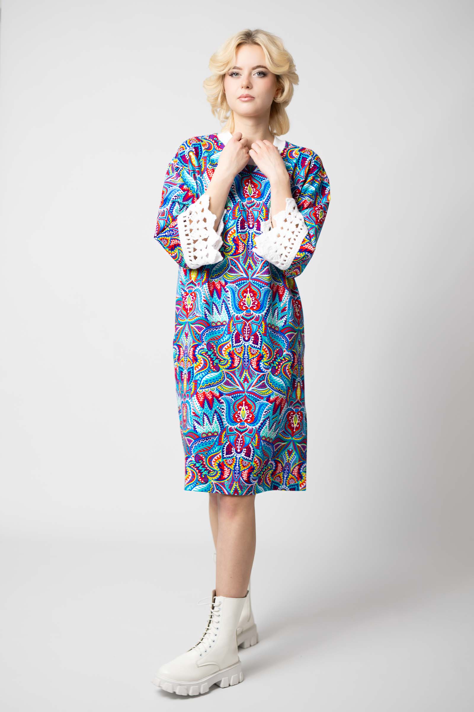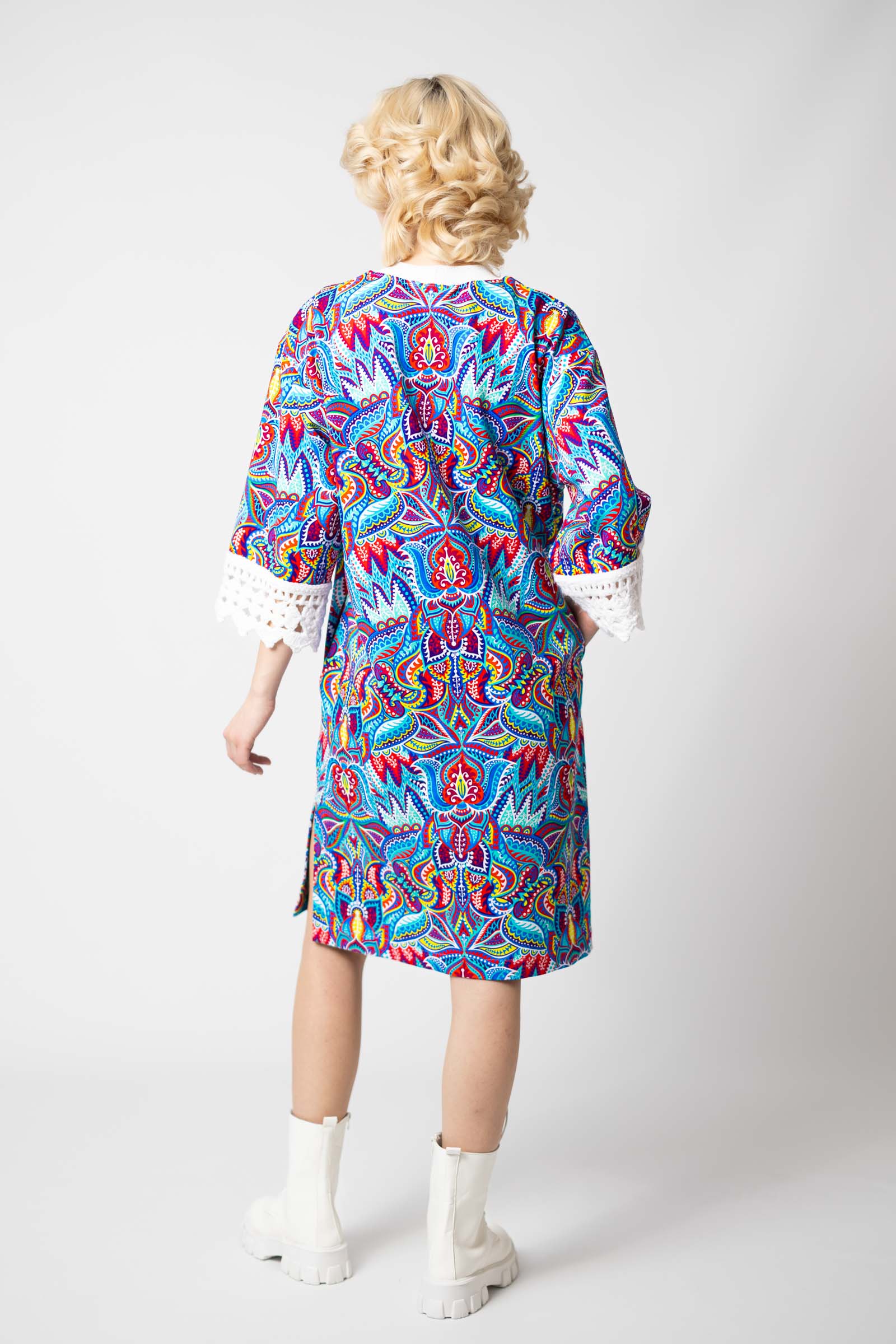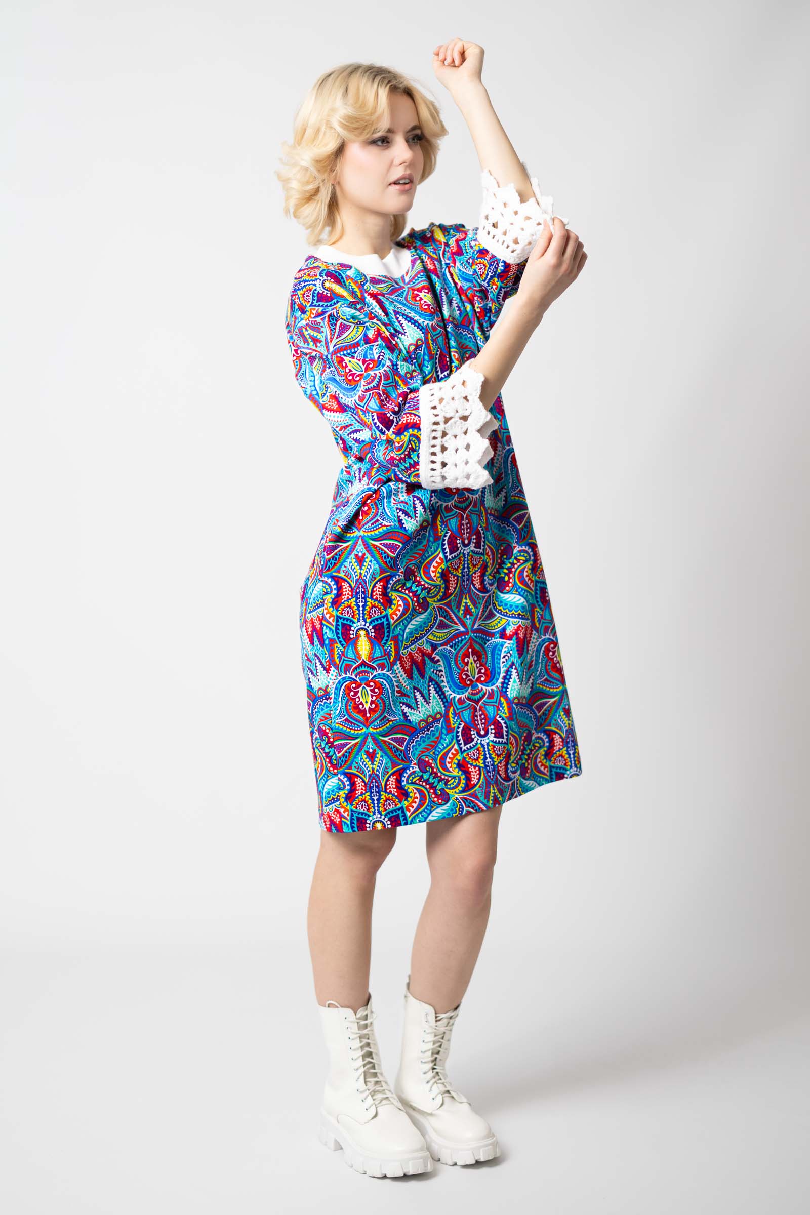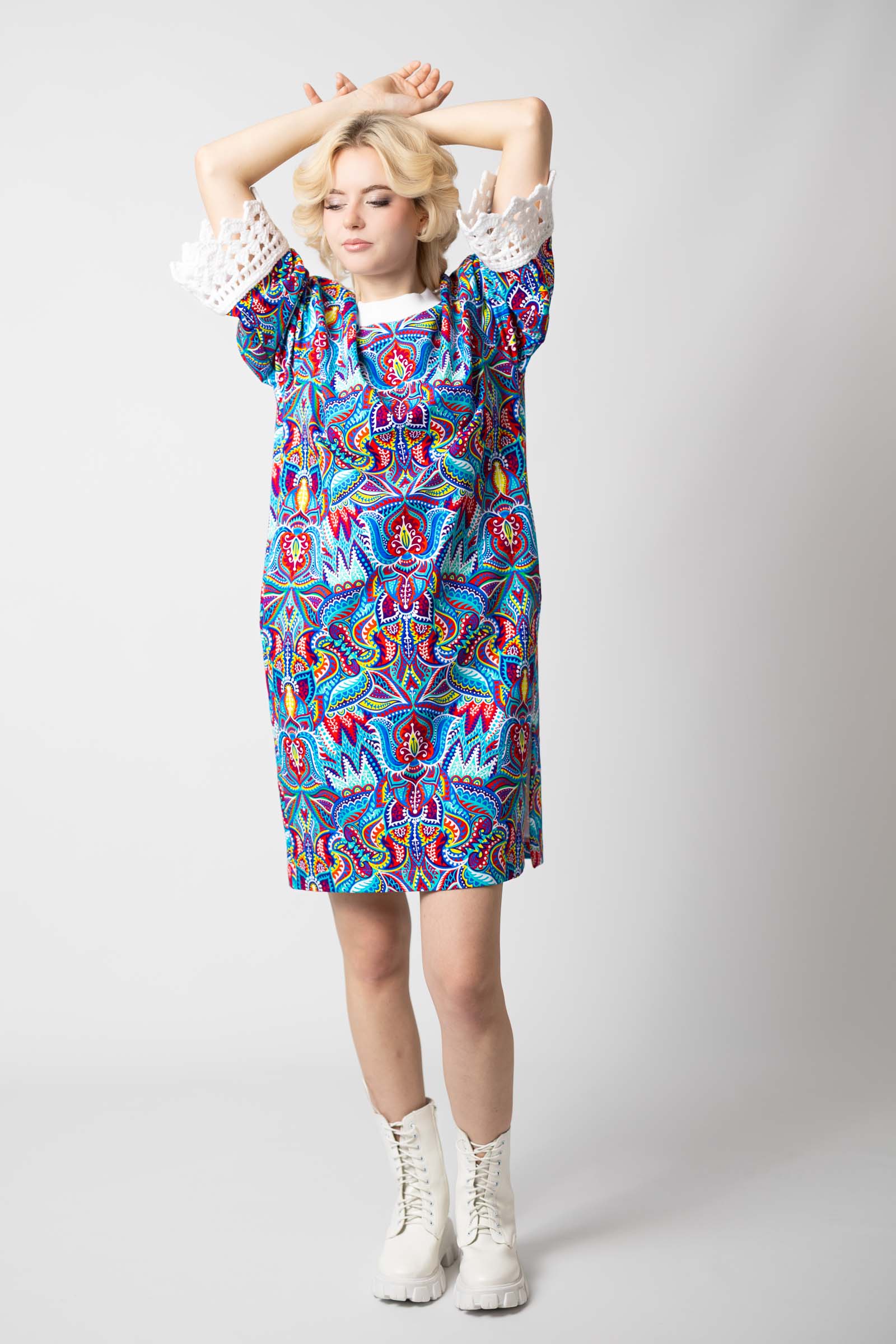 Sukienka mini z szydełkowymi mankietami "MEXICO" white