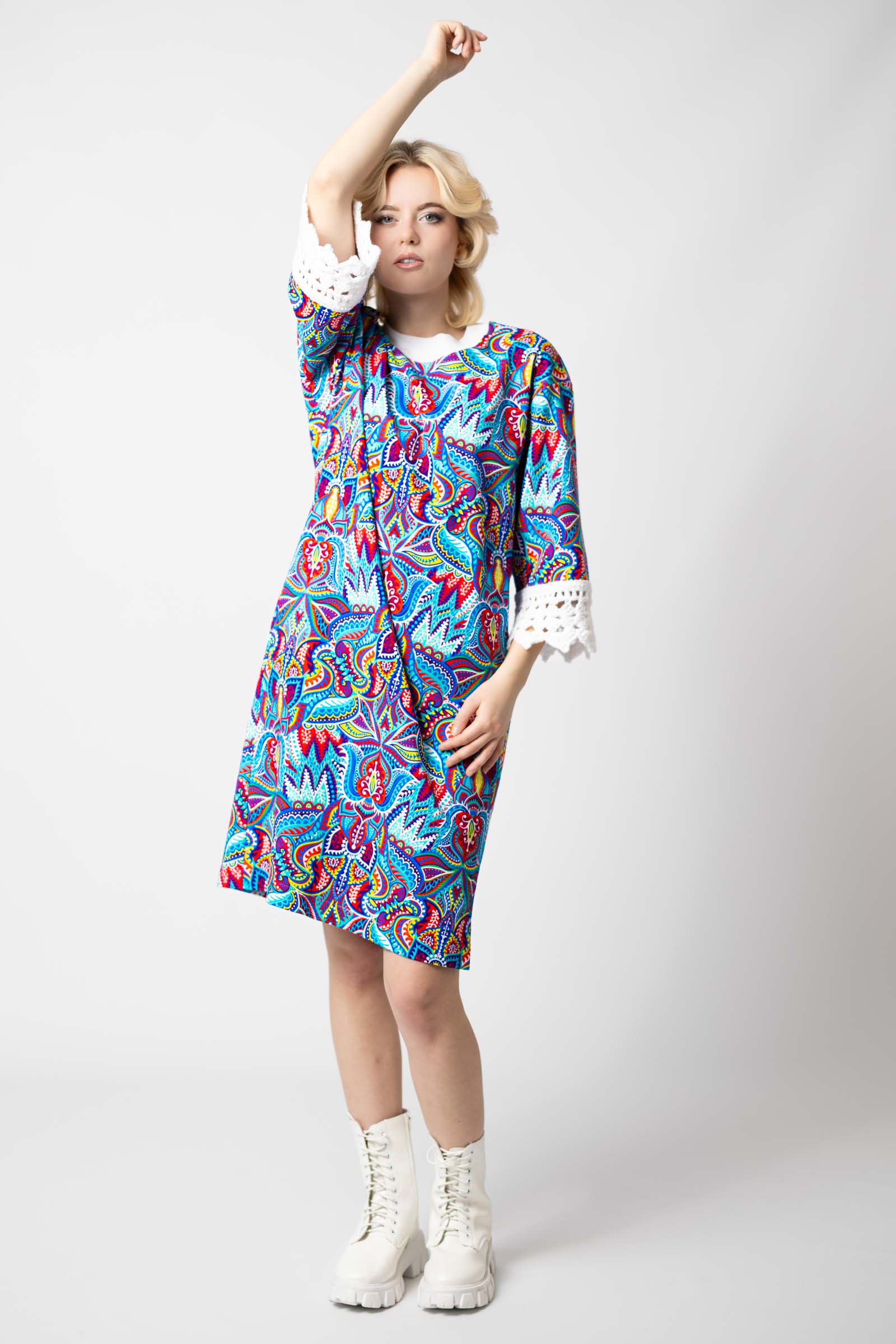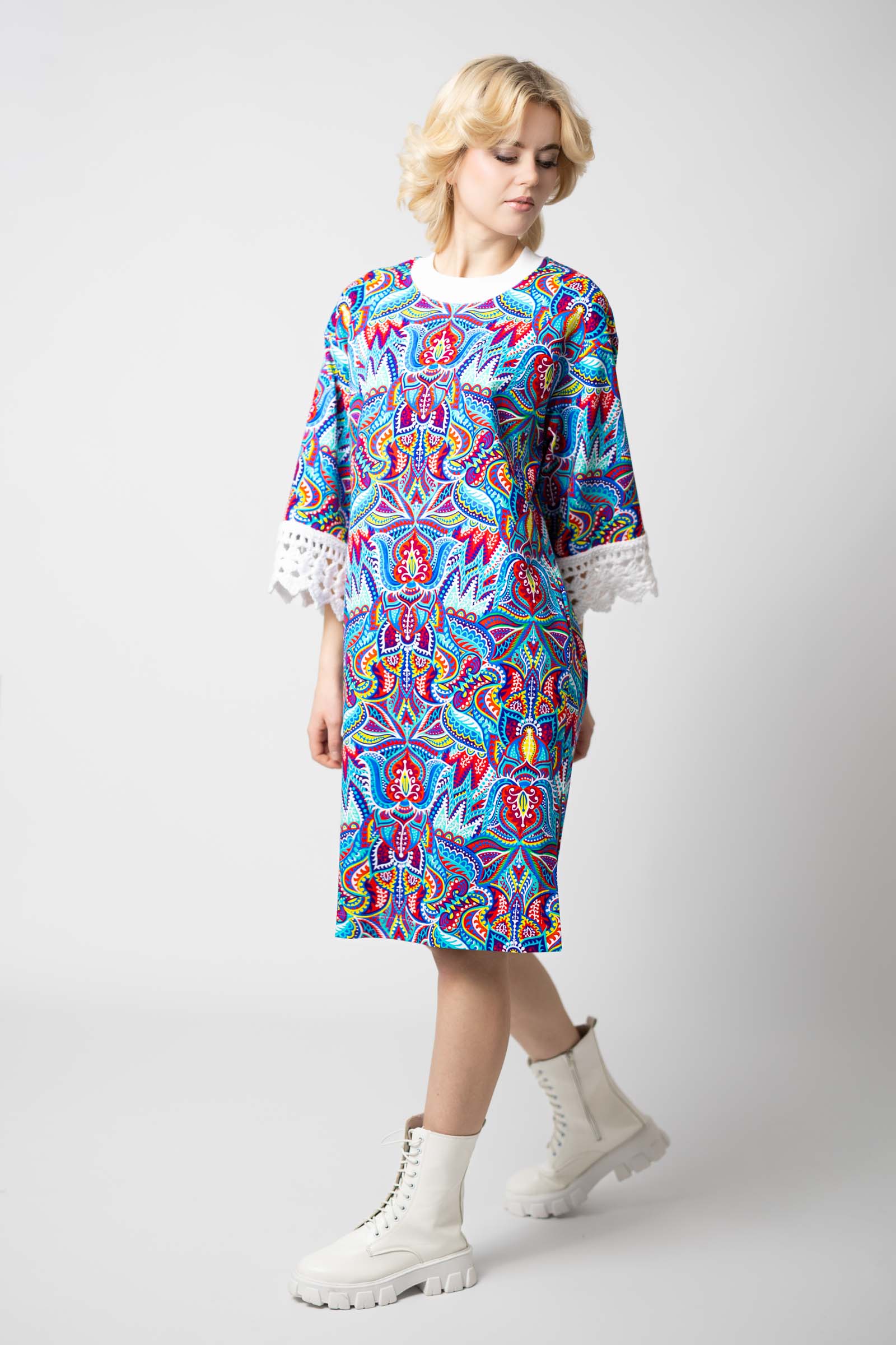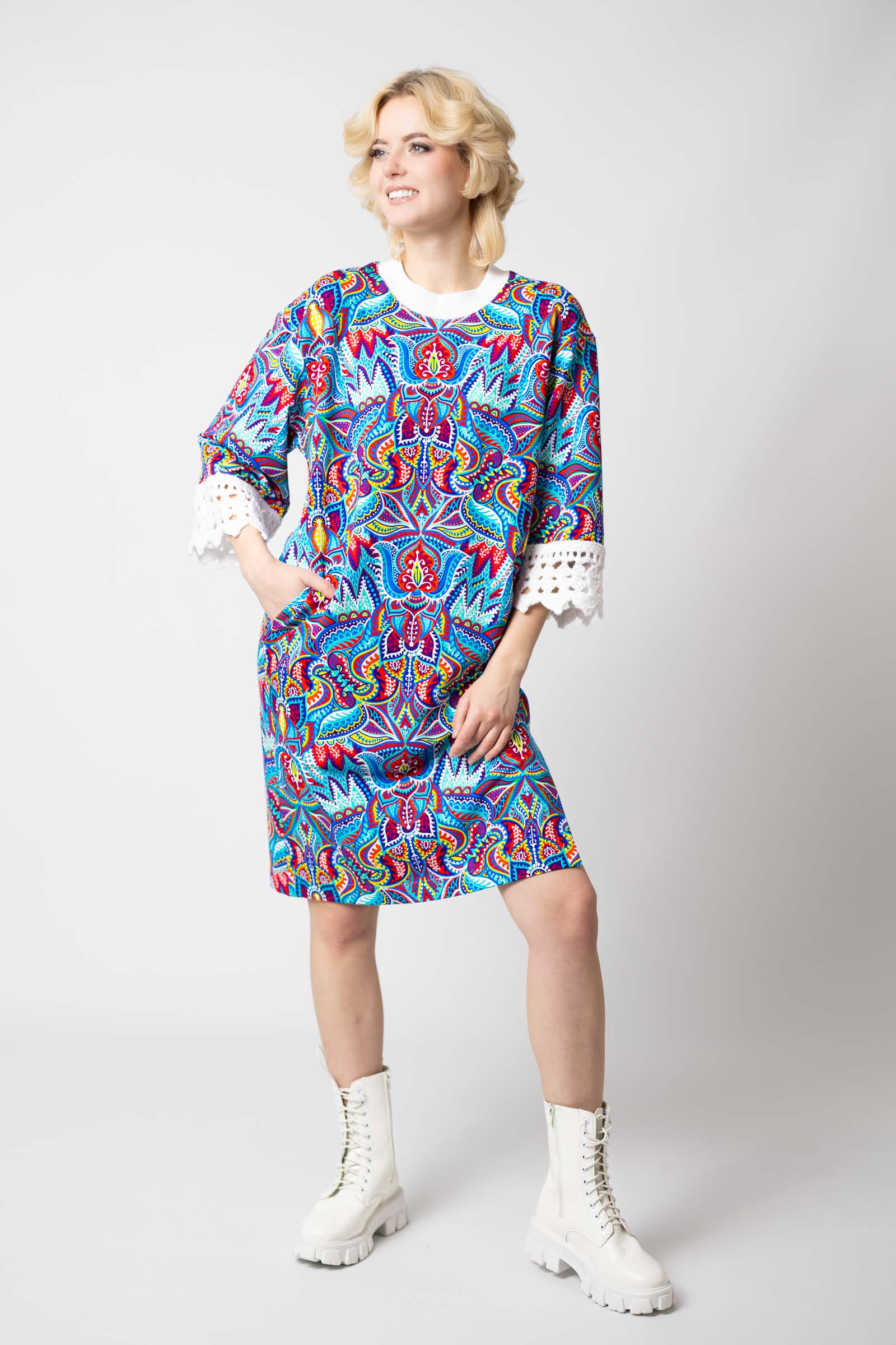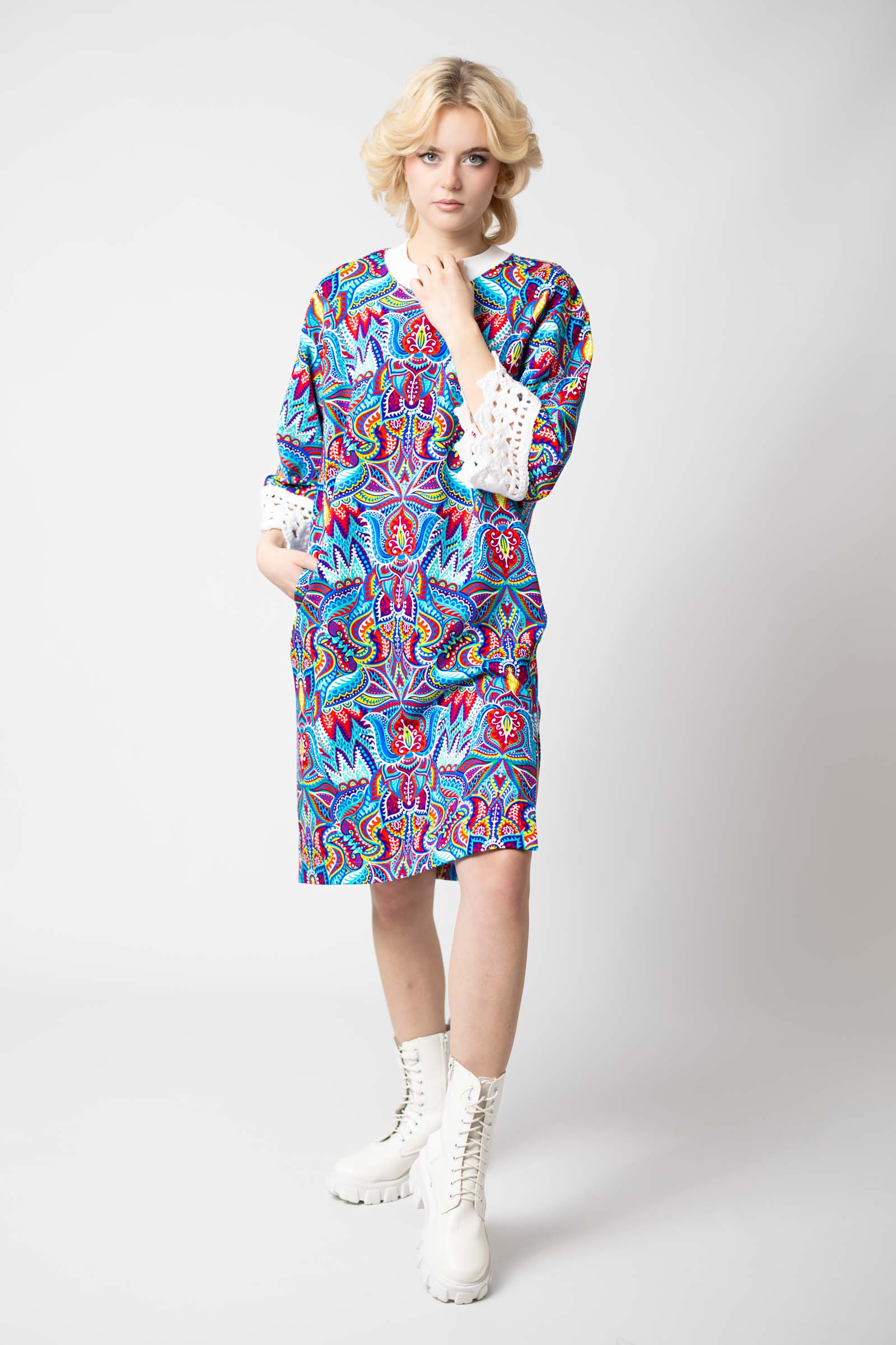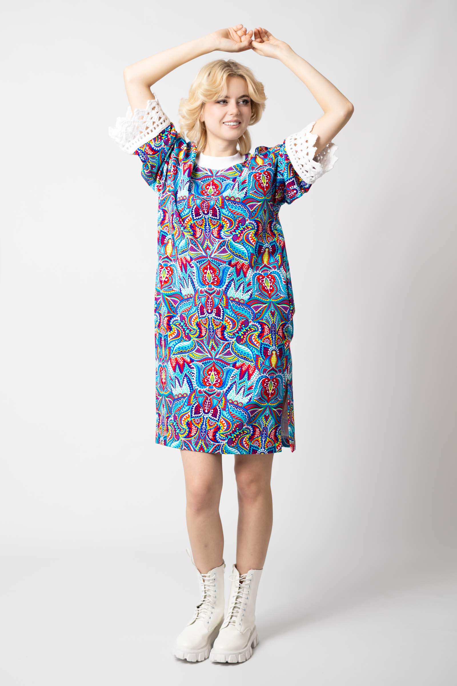 Sukienka mini z szydełkowymi mankietami "MEXICO" white
