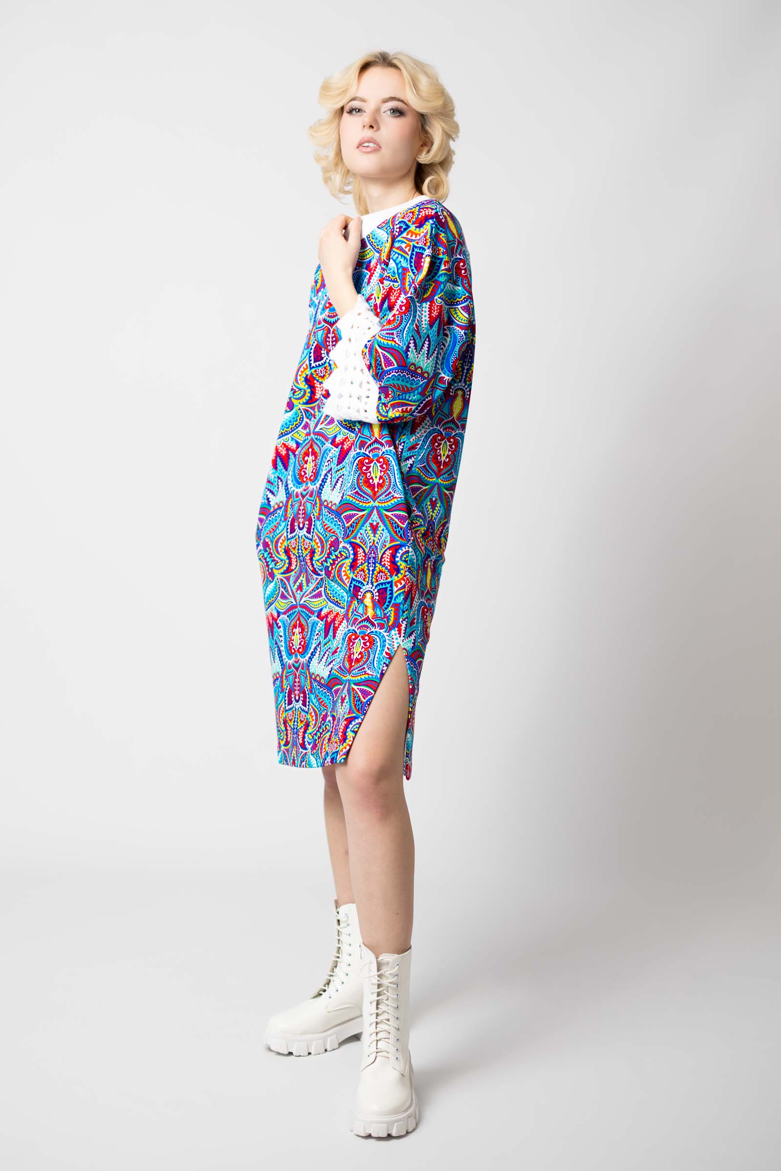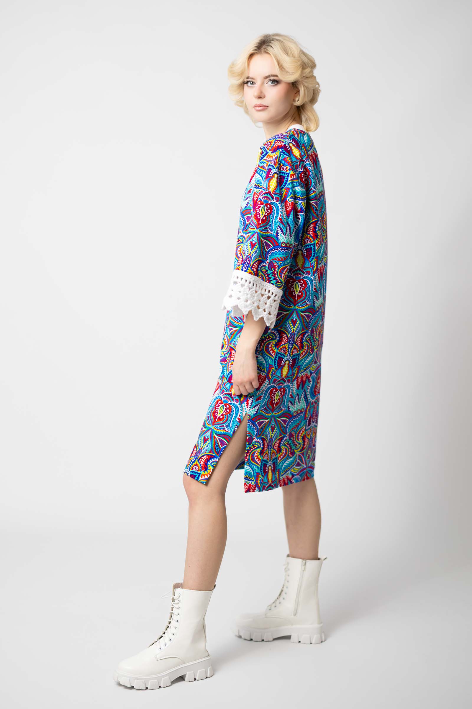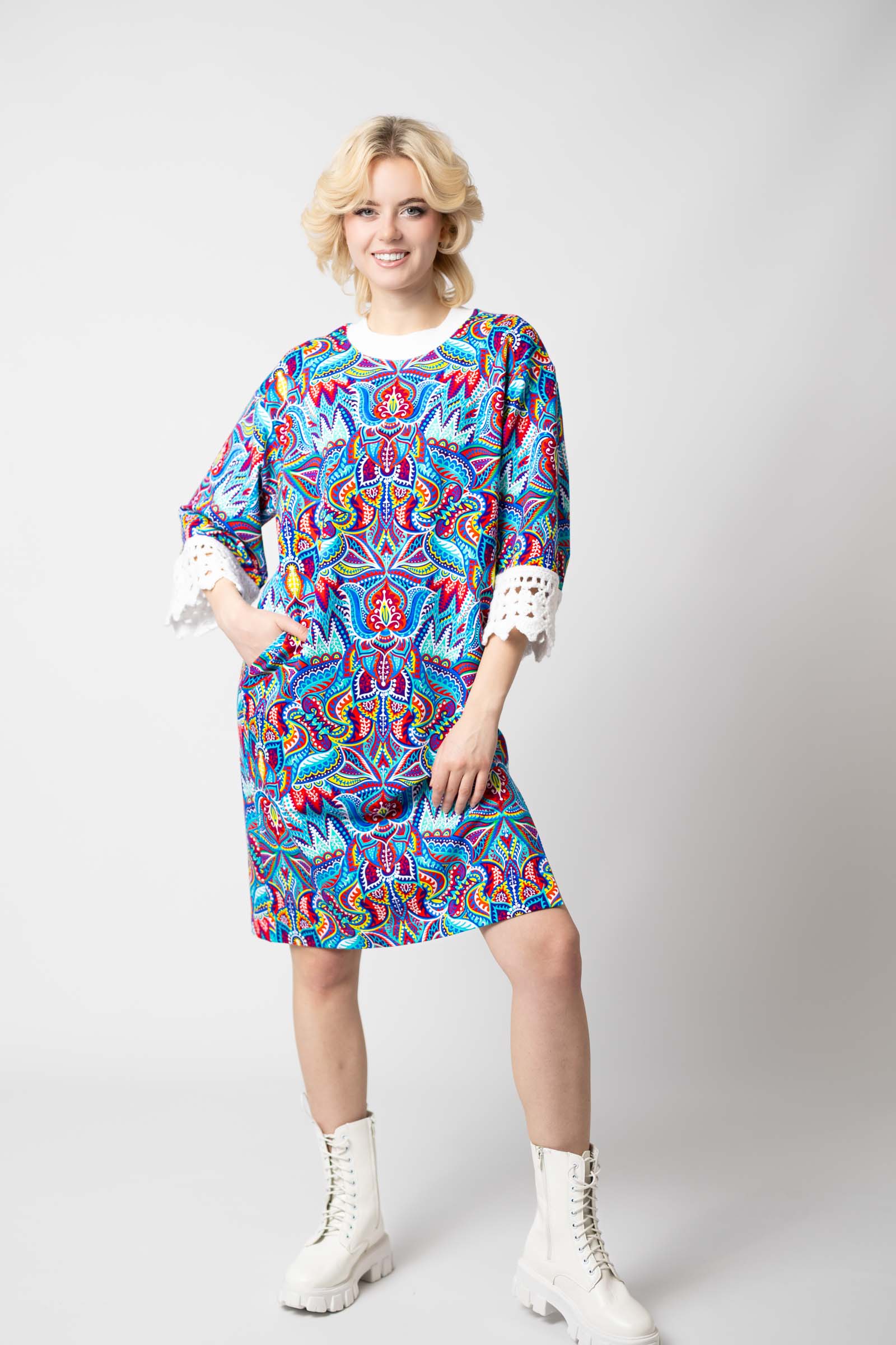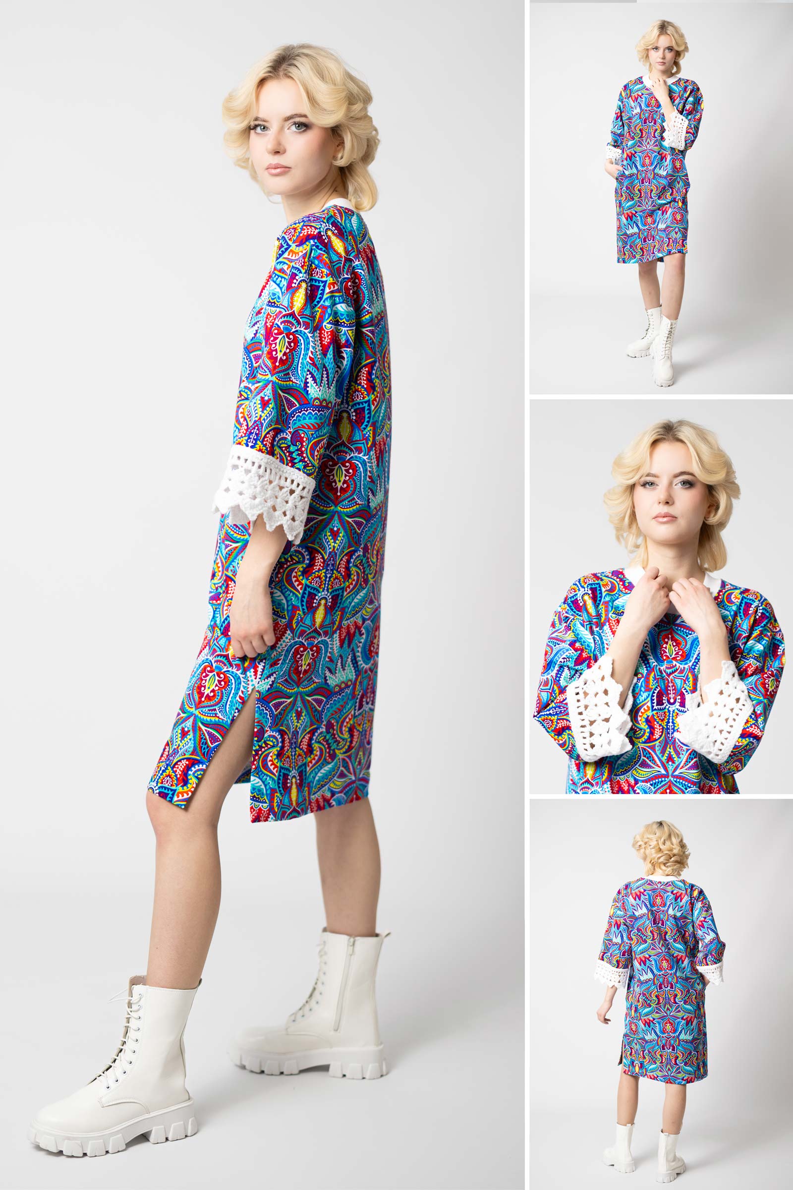 Sukienka mini z szydełkowymi mankietami "MEXICO" white