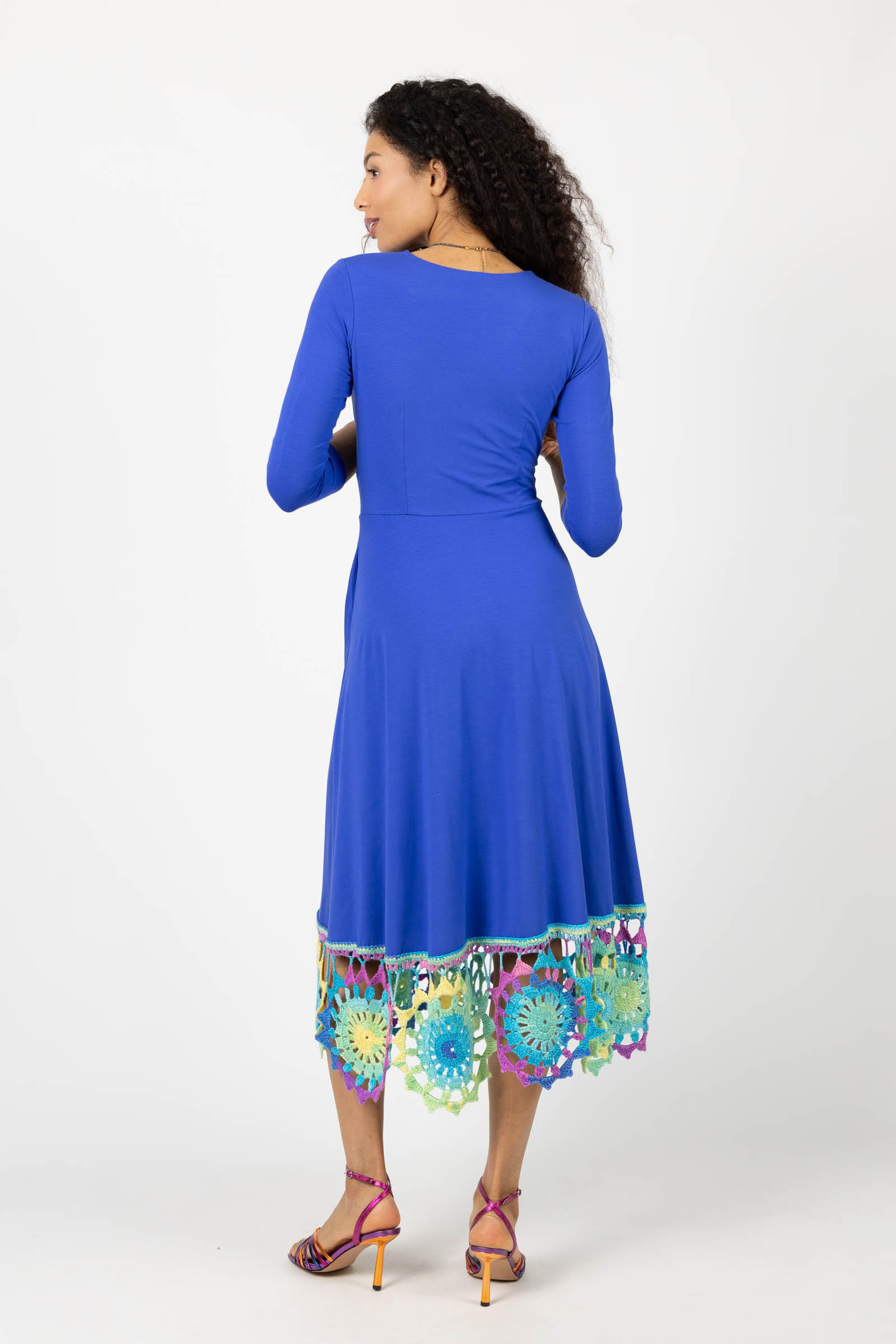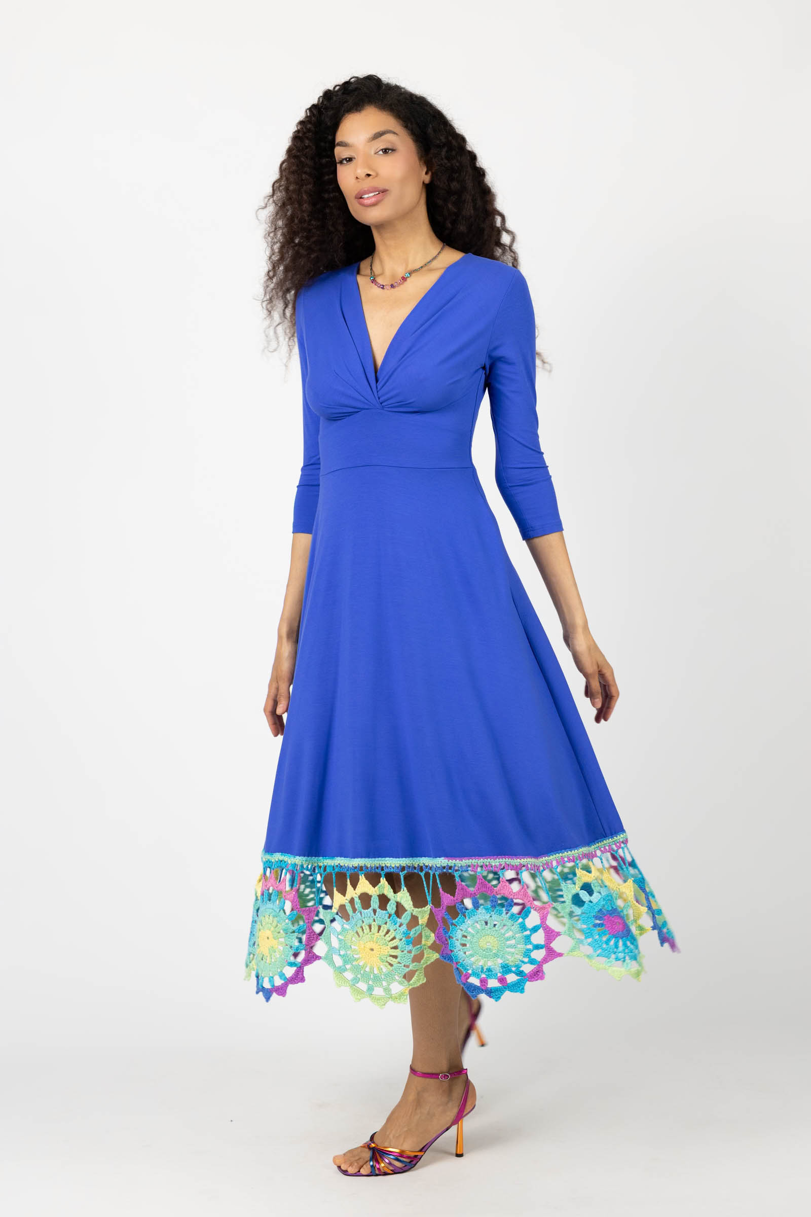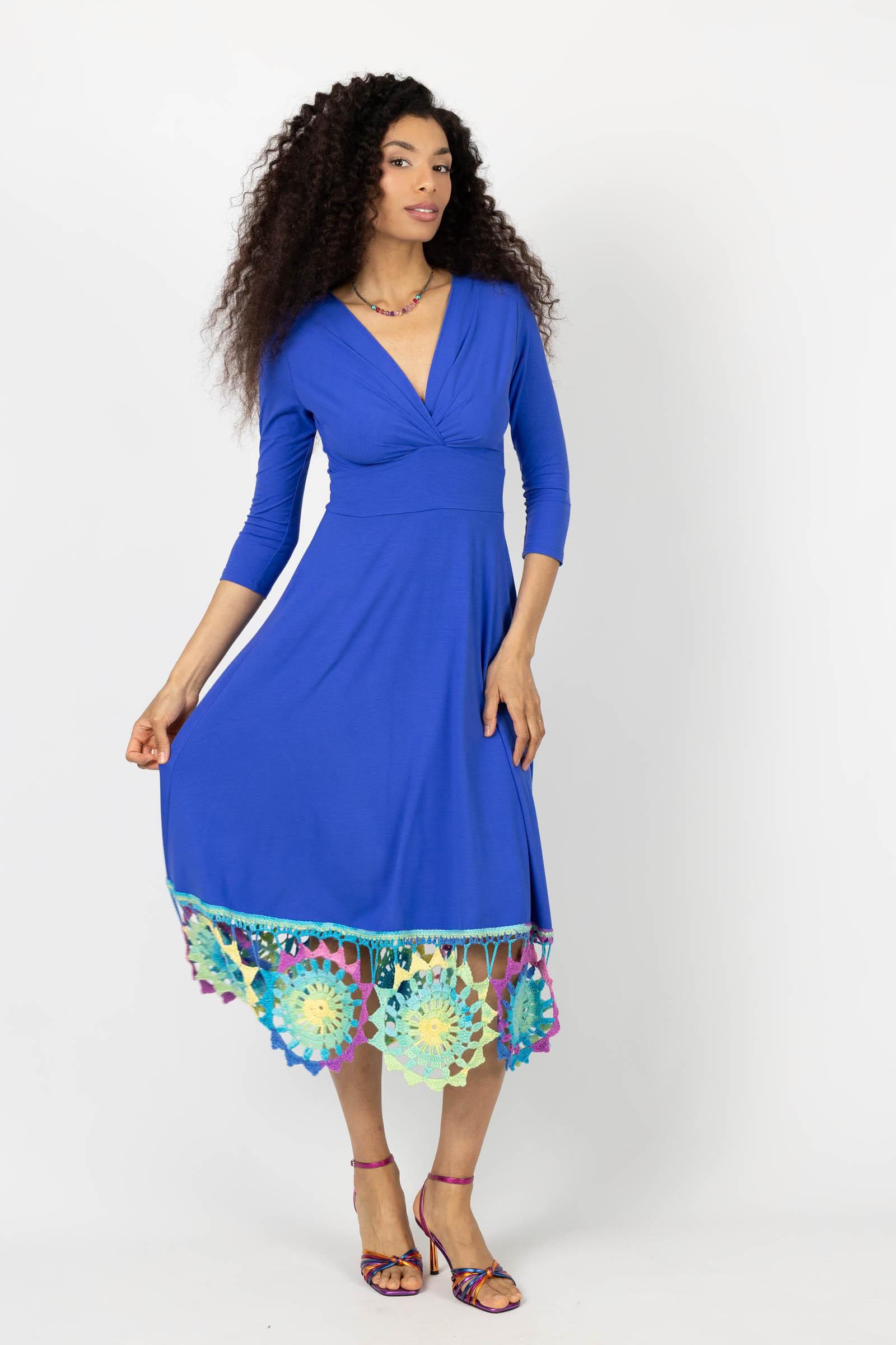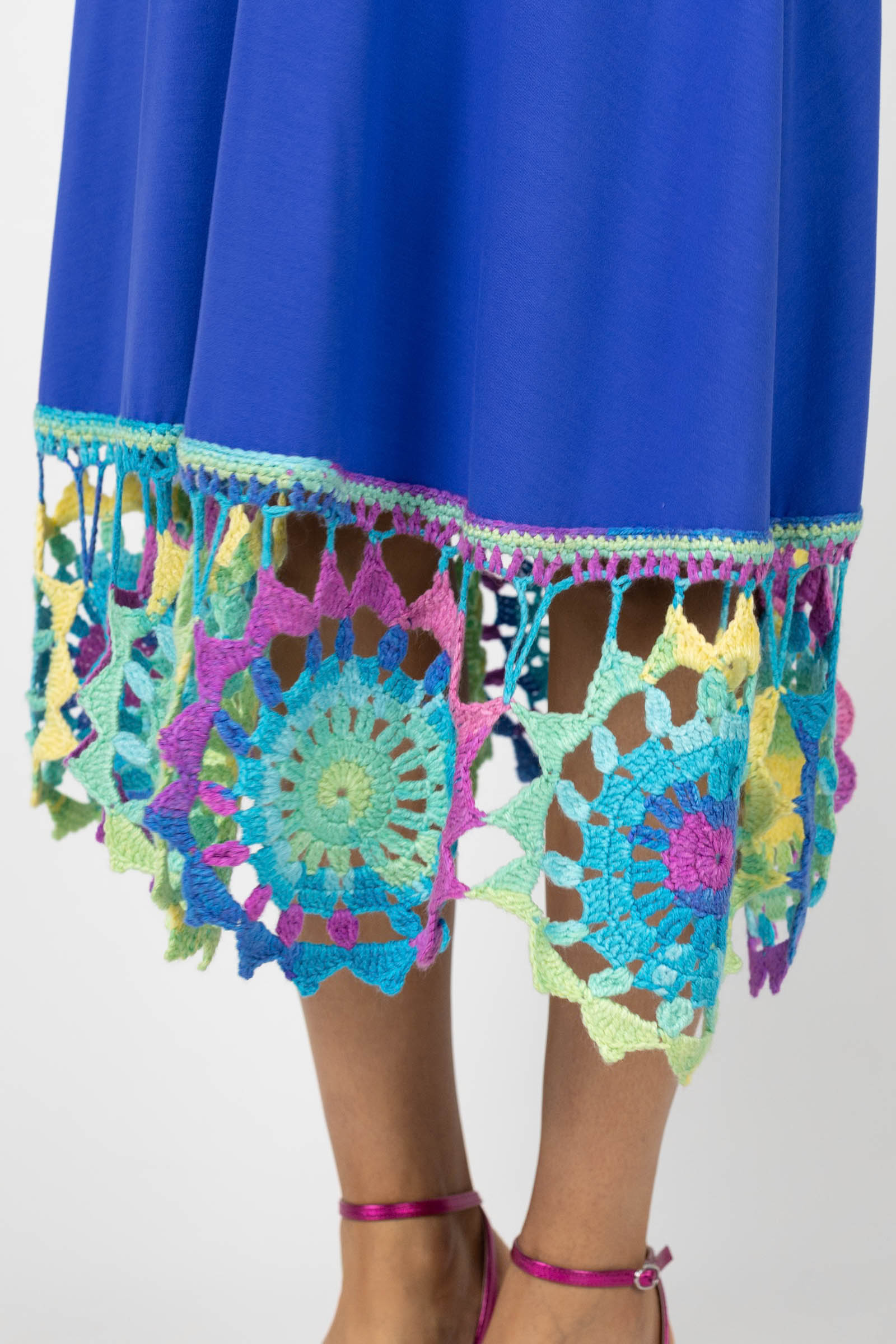 Sukienka wiskozowa midi chabrowa z szydełkową koronką na dole "KGart"