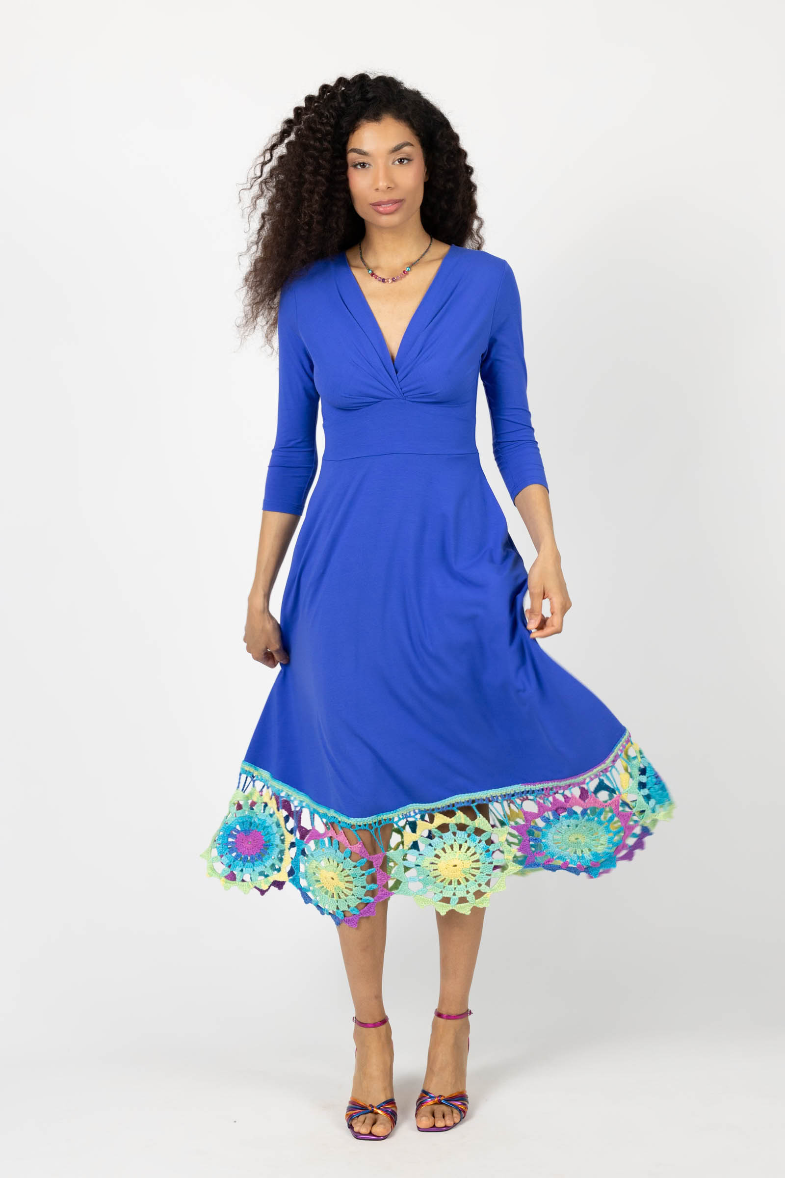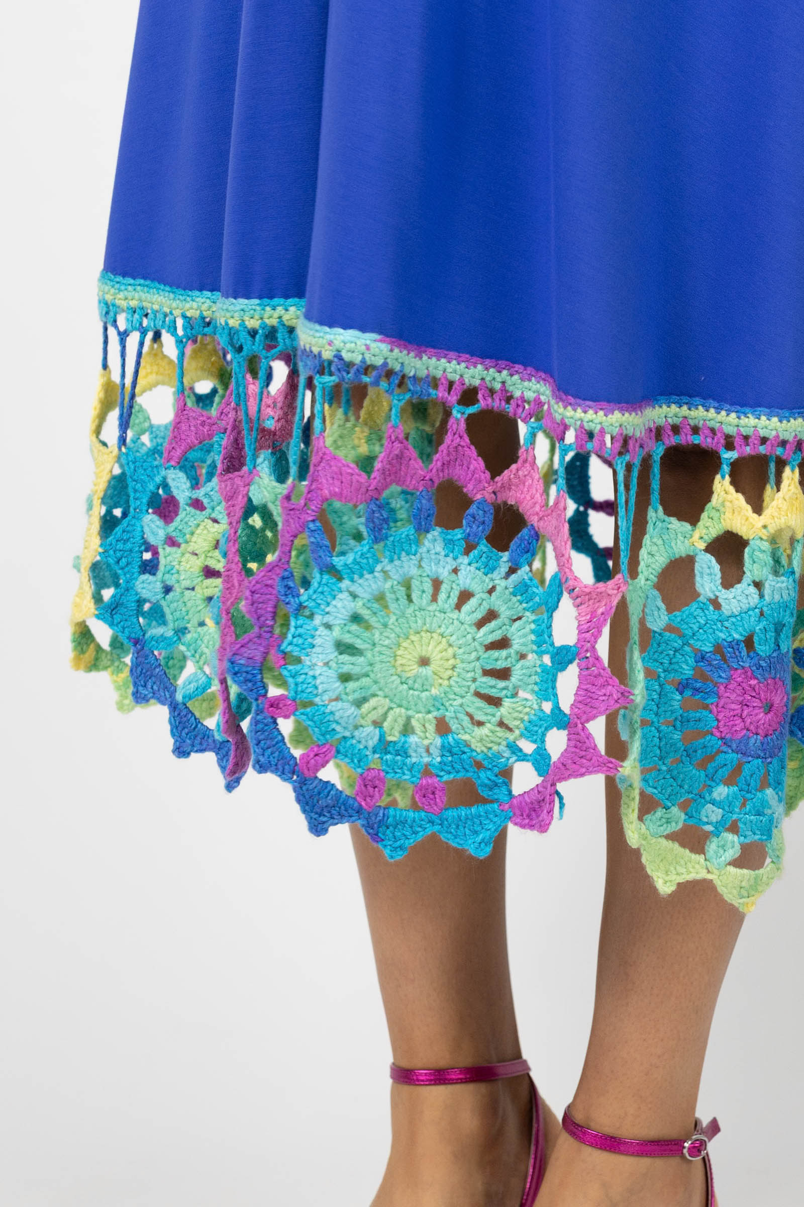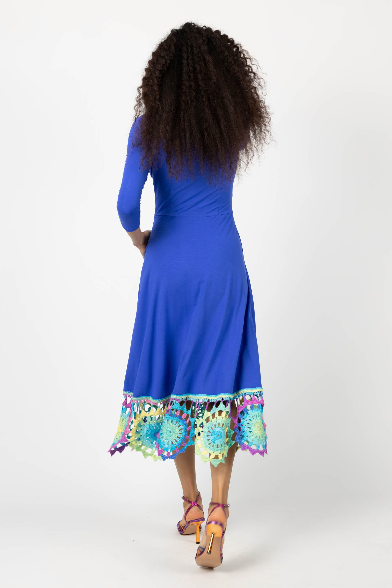 Sukienka wiskozowa midi chabrowa z szydełkową koronką na dole "KGart"