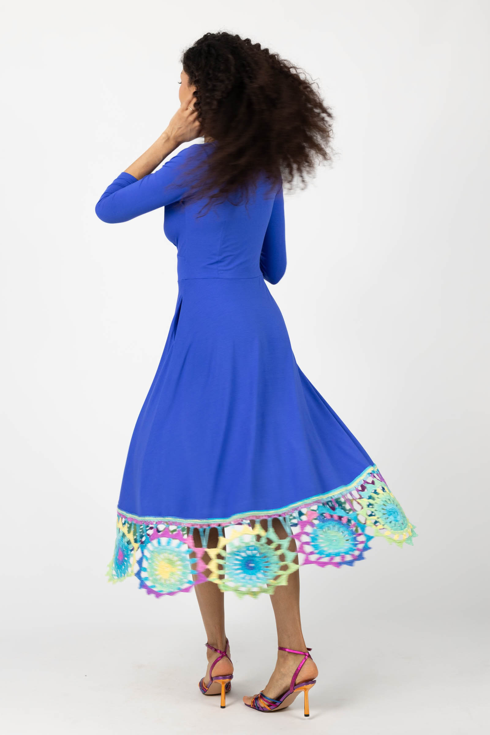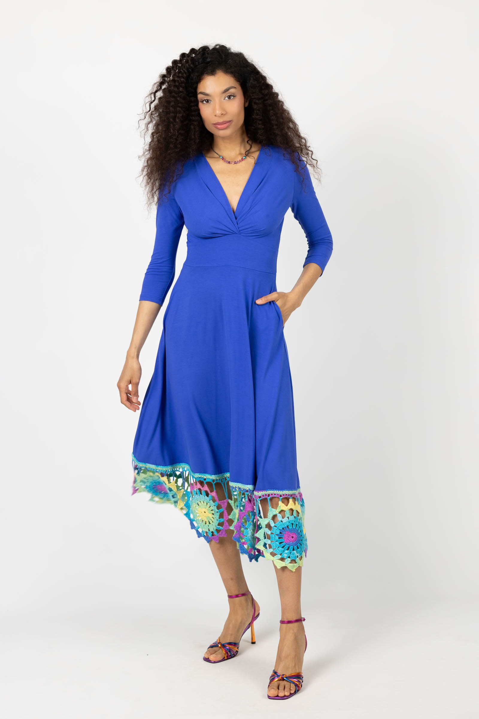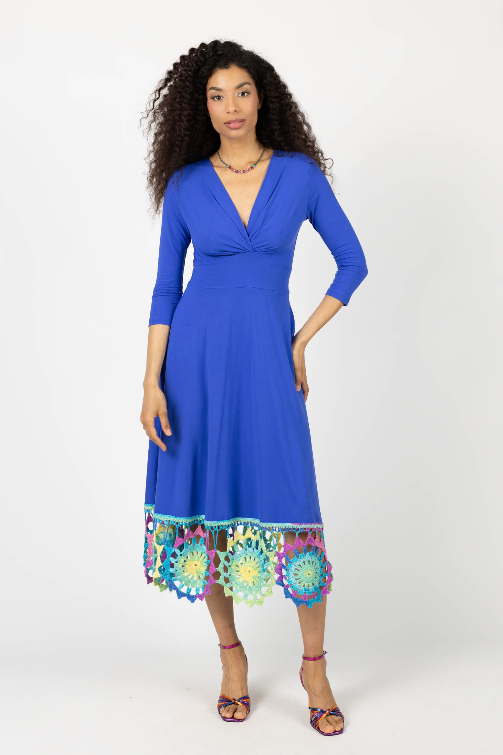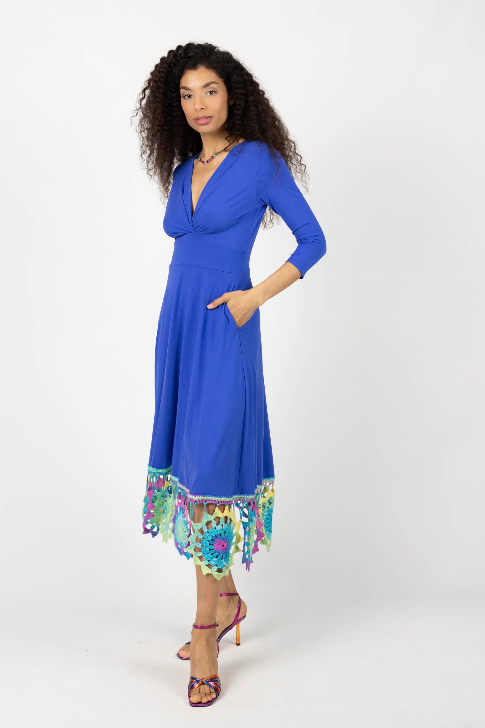 Sukienka wiskozowa midi chabrowa z szydełkową koronką na dole "KGart"