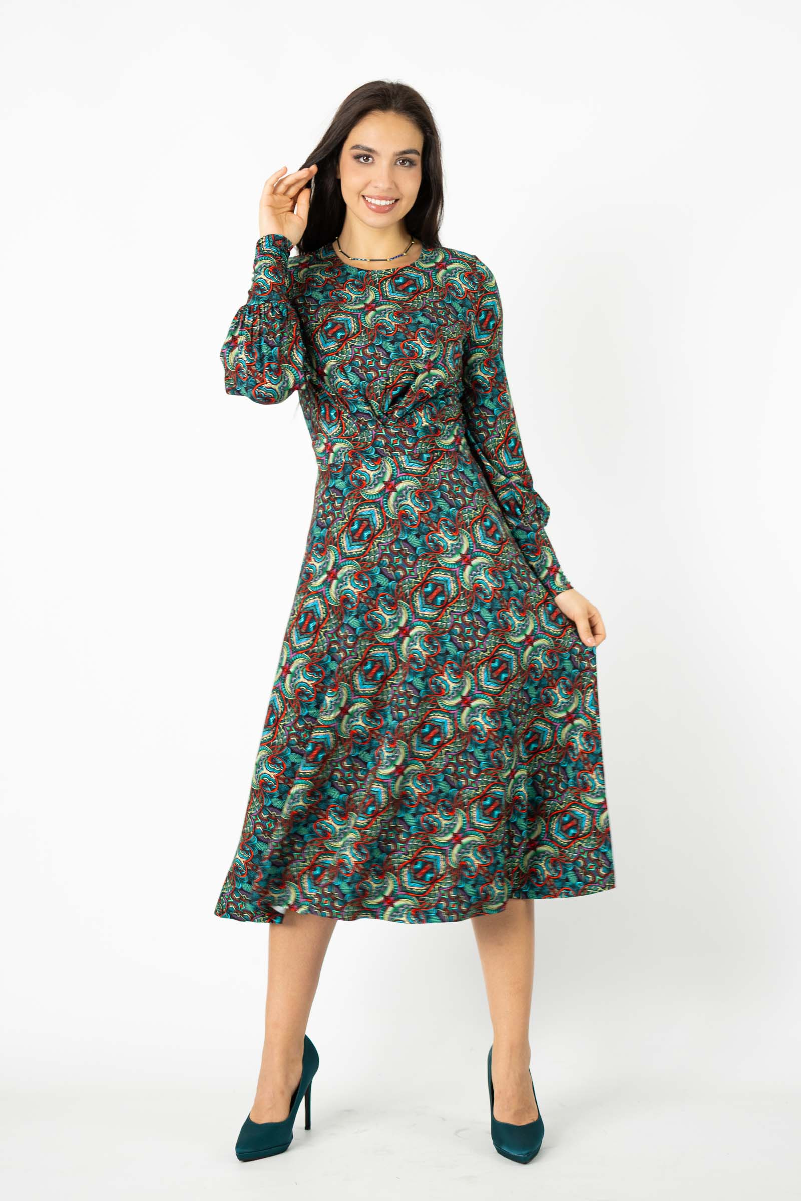 Sukienka z pewnością przyciągnie uwagę swoim niepowtarzalnym wzorem i starannie dobranymi detalami. To idealny wybór dla kobiet ceniących sobie indywidualność i wyrafinowany gust w modzie.