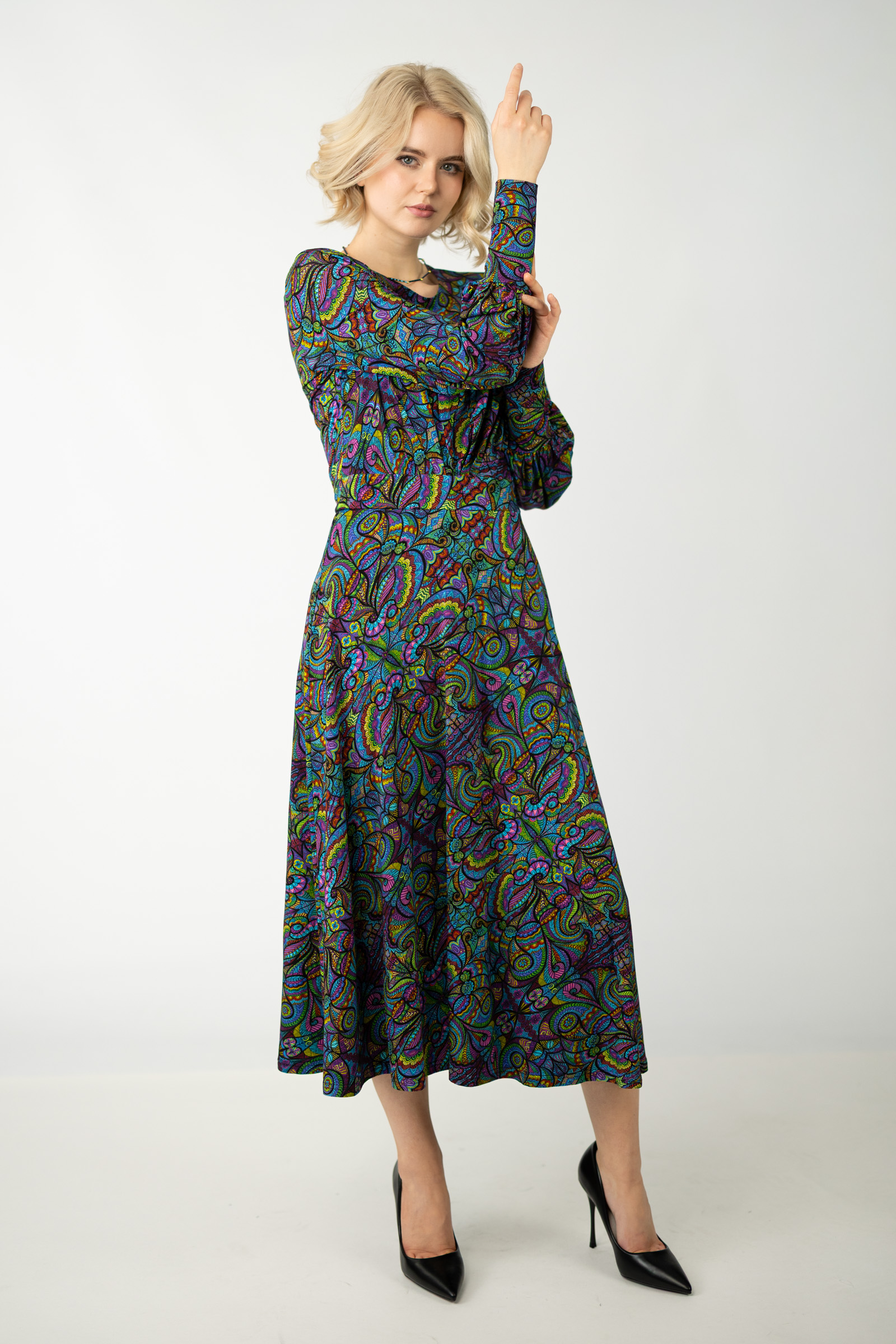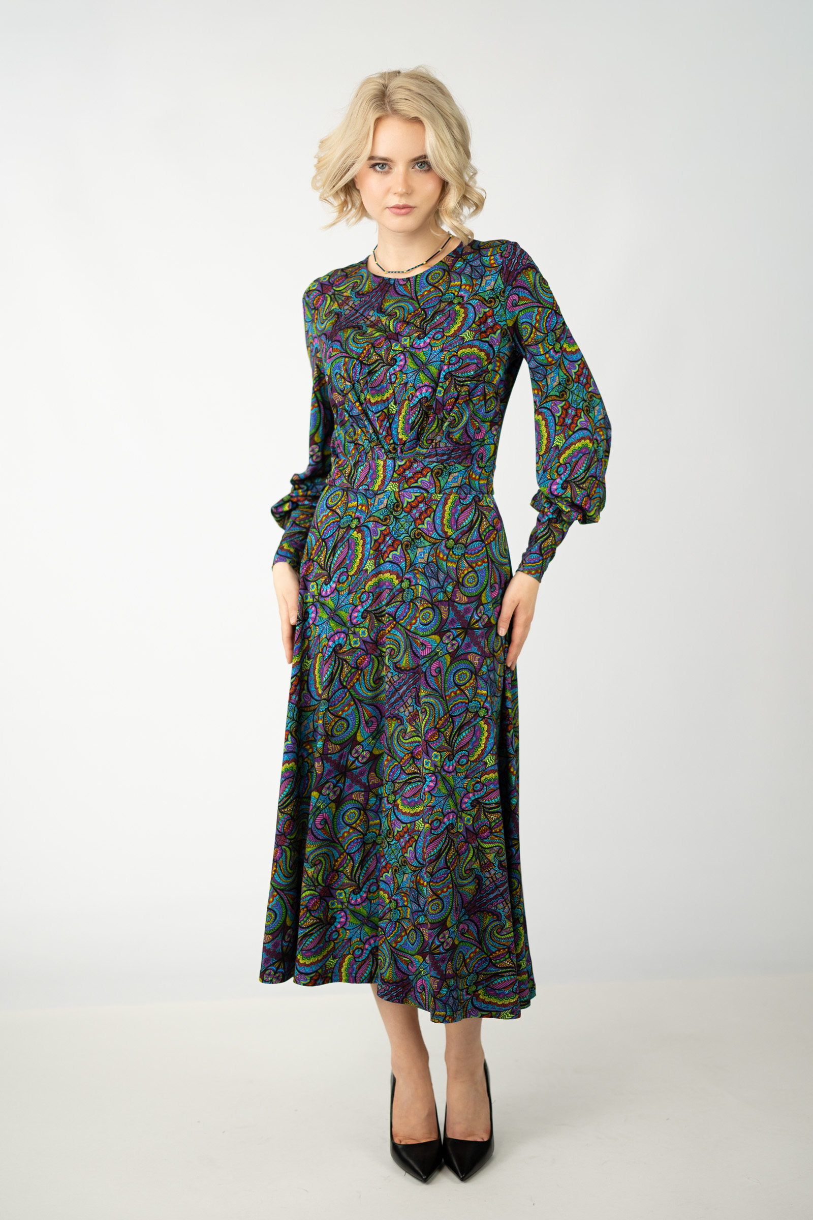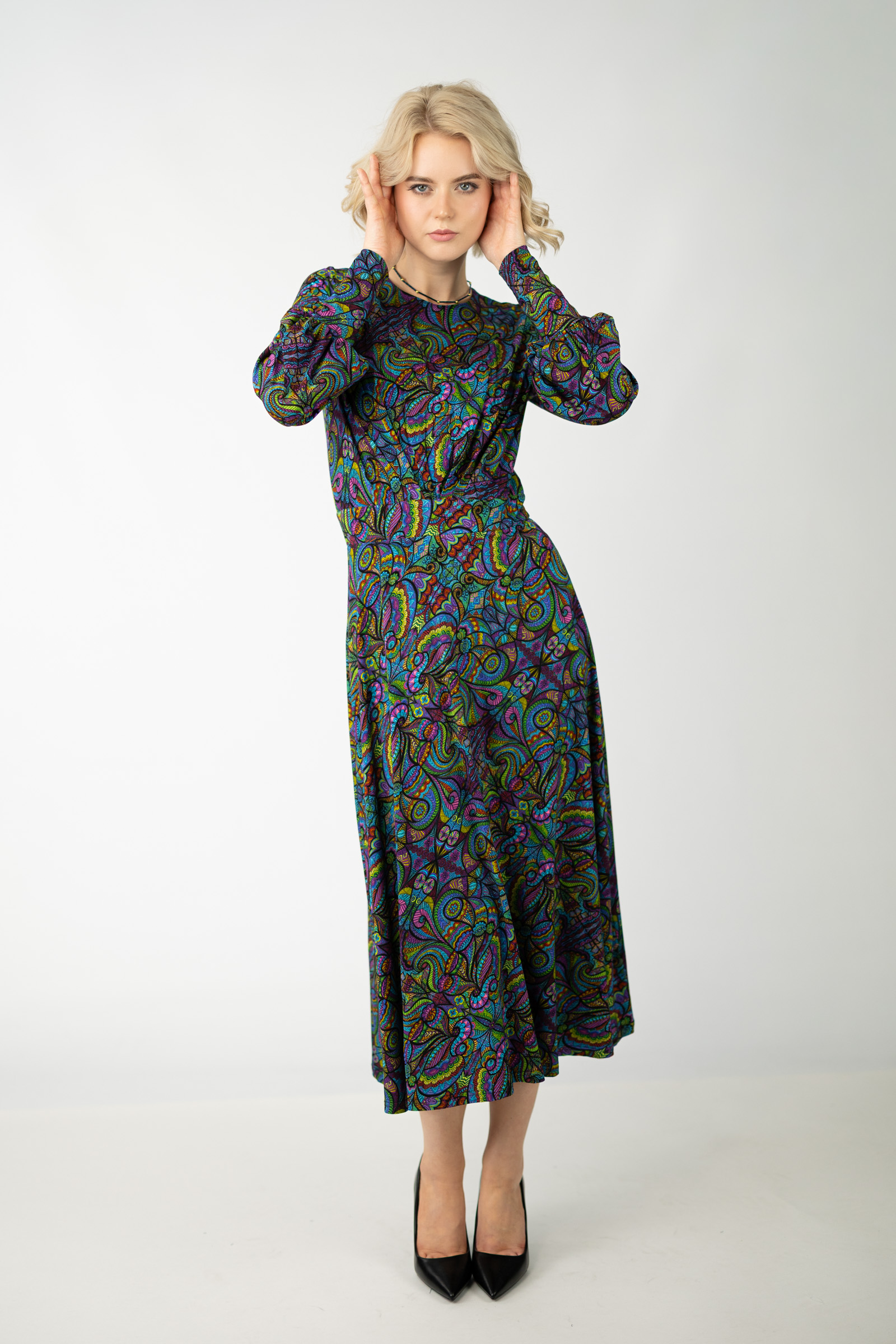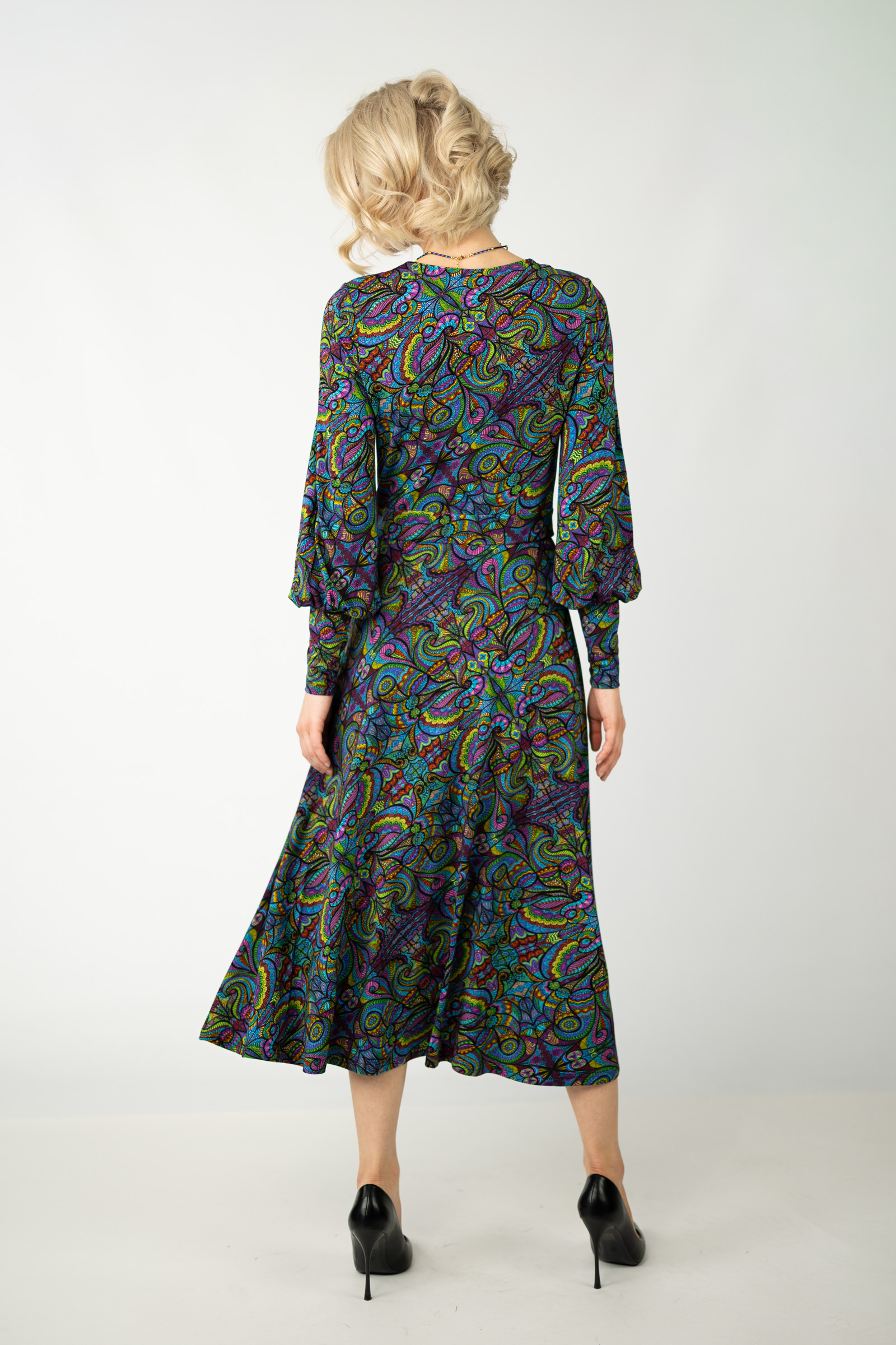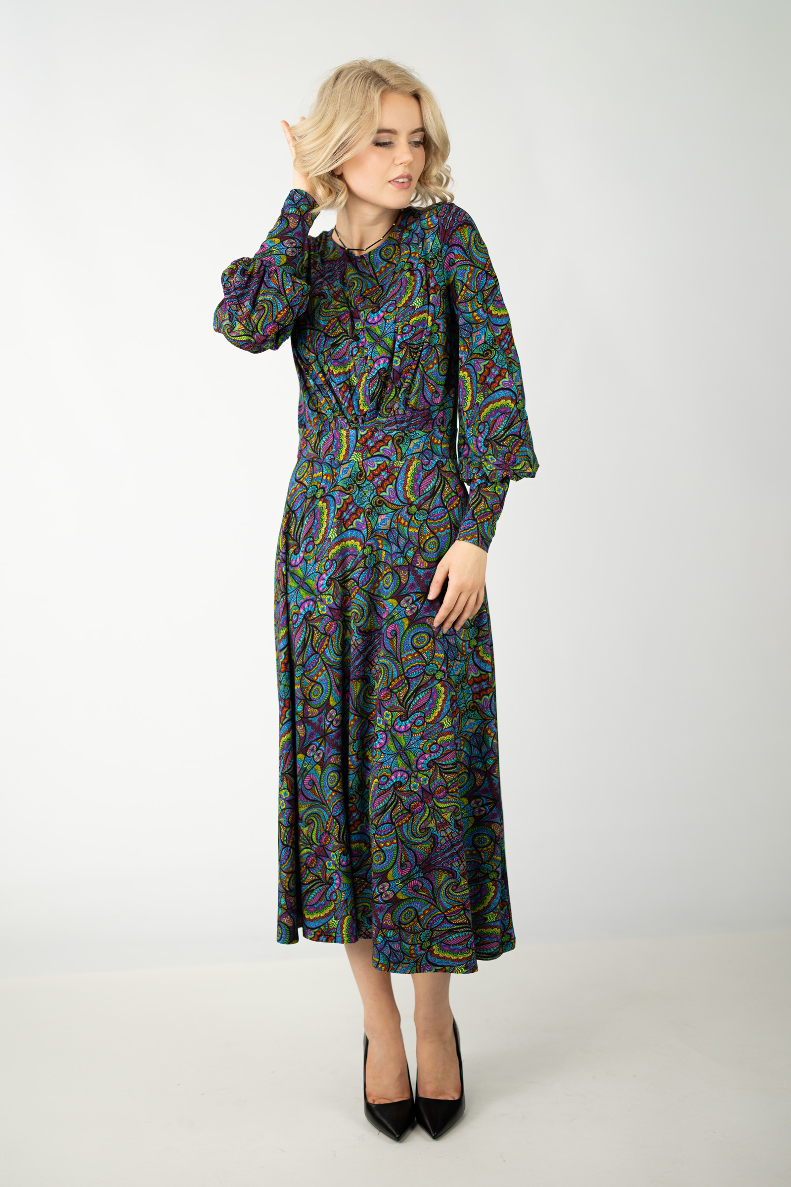 Sukienka wiskozowa midi z bufkami "MIST"