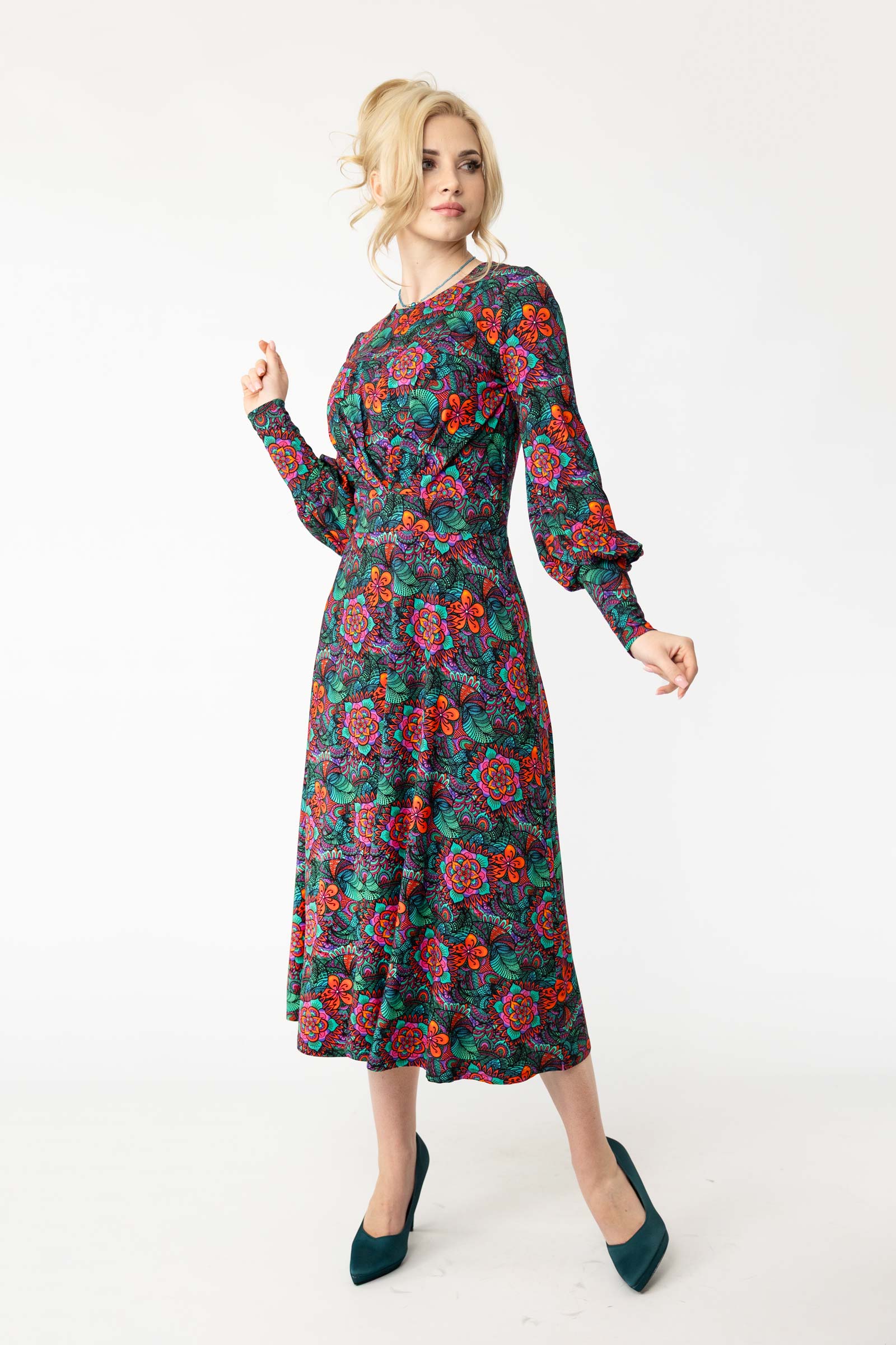 Sukienka wiskozowa midi z bufkami "SECRET"