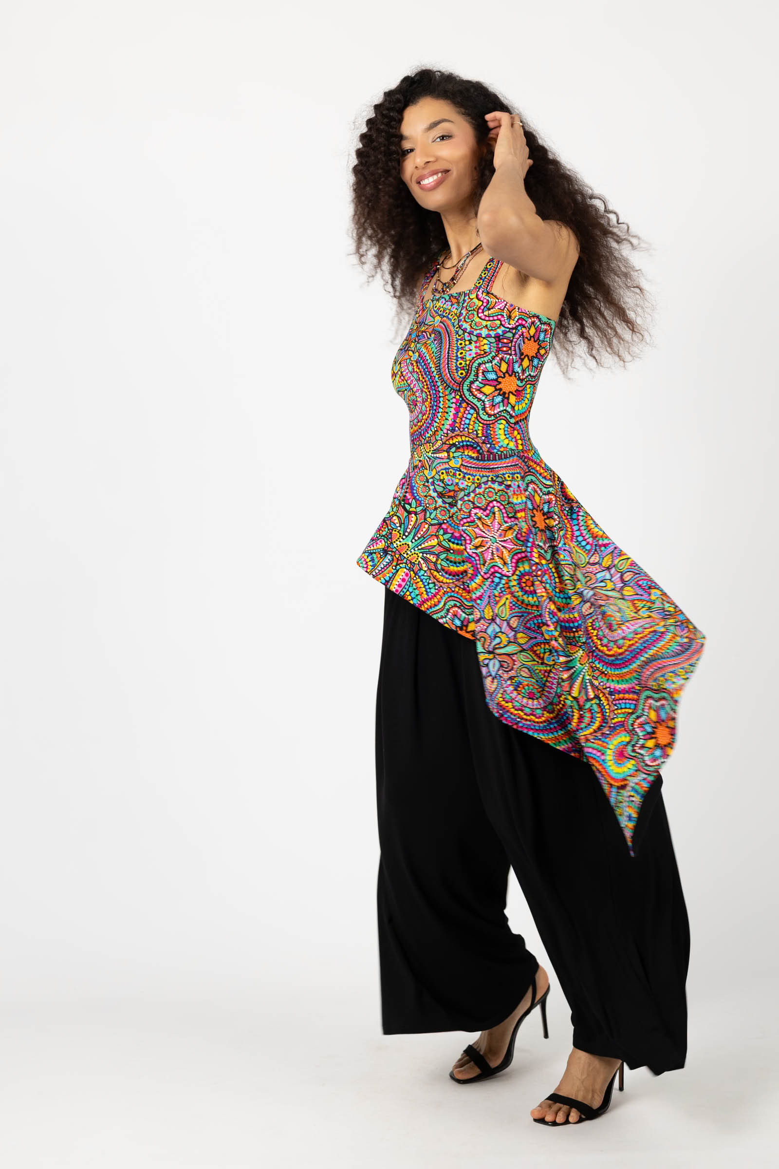 Top na szerokie ramiączka z trenem "CONFETTI"