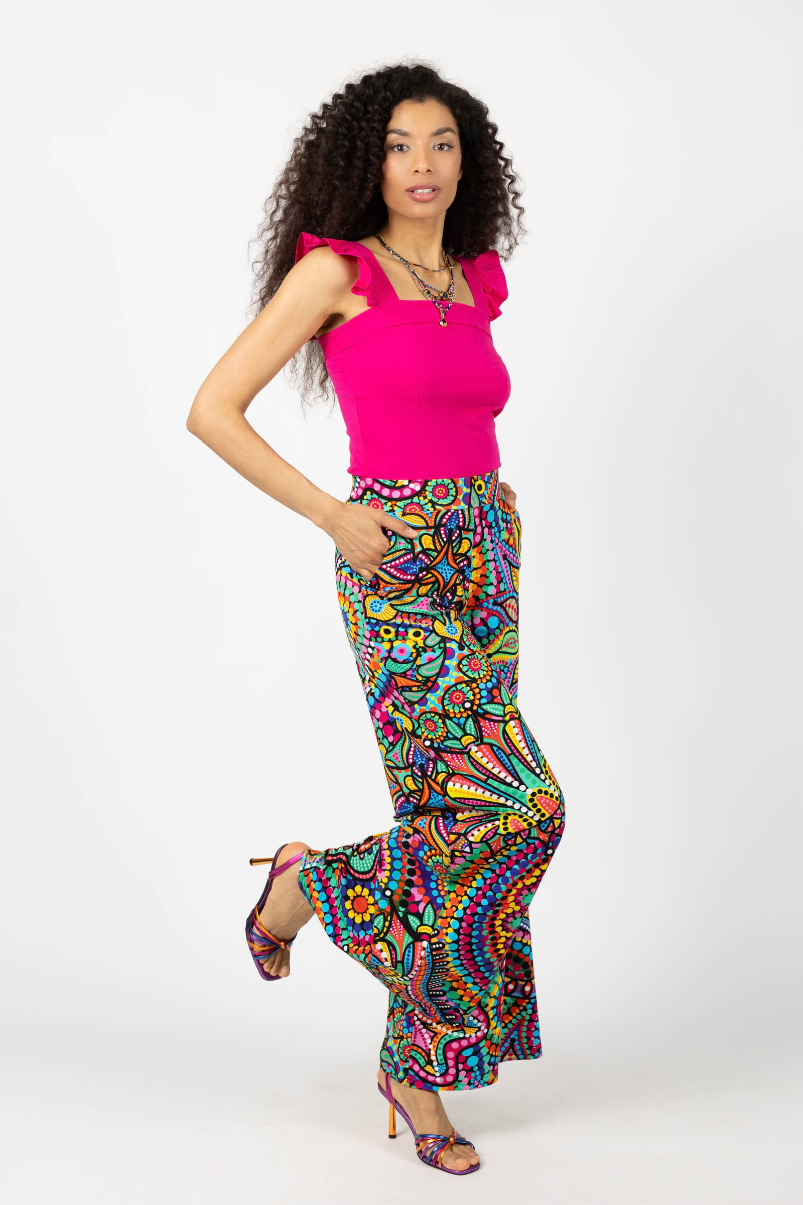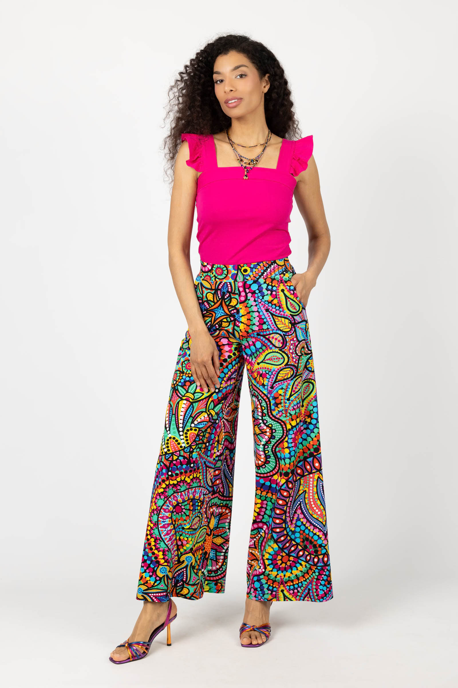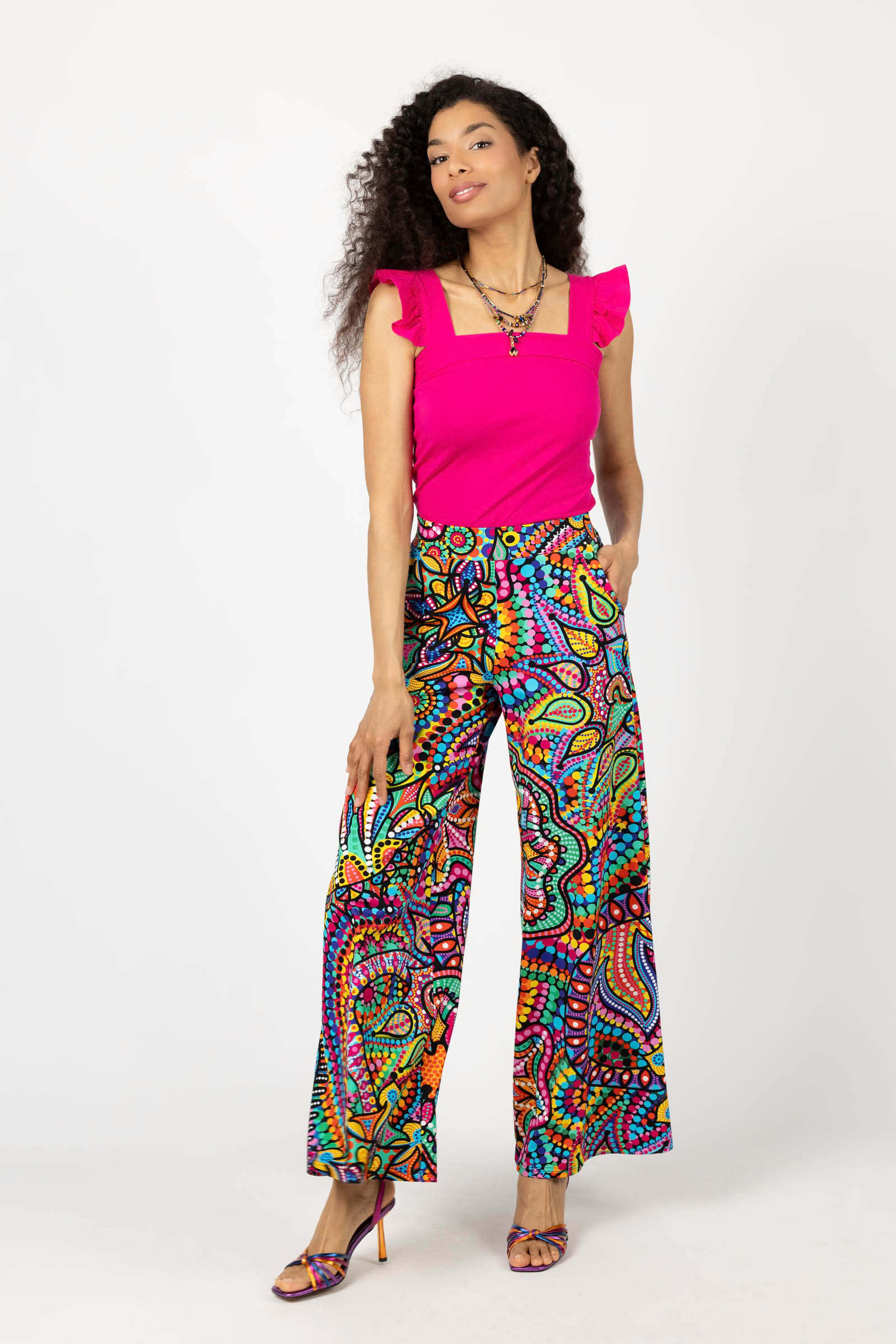 Top różowy na szerokie ramiączka z falbankami "BASIC"