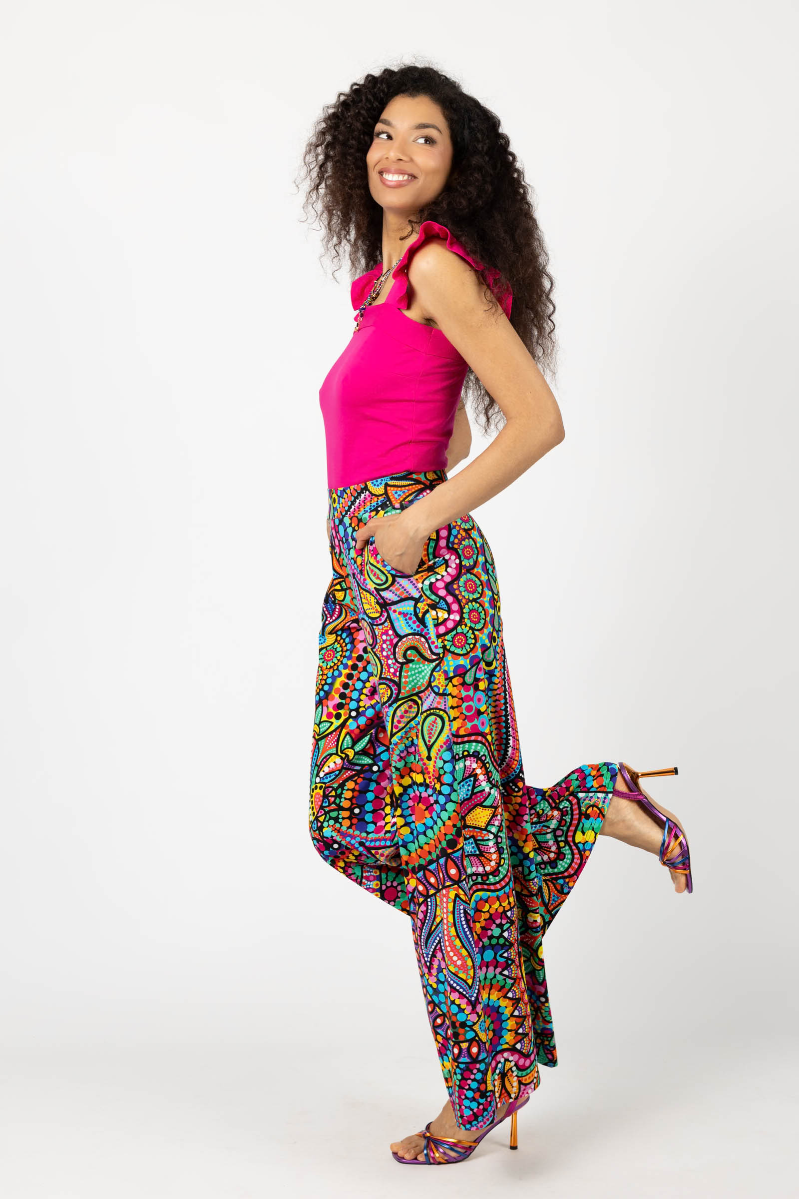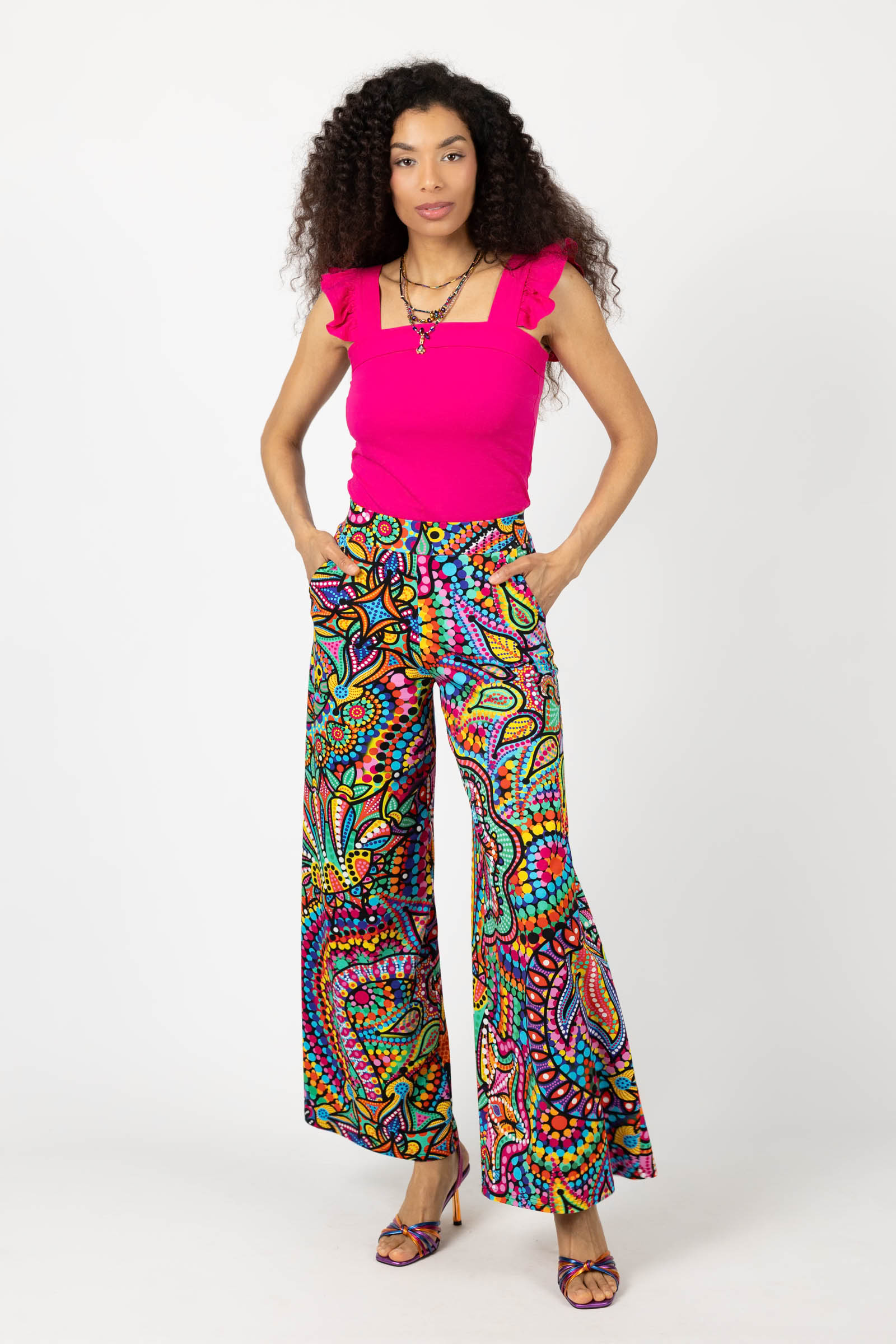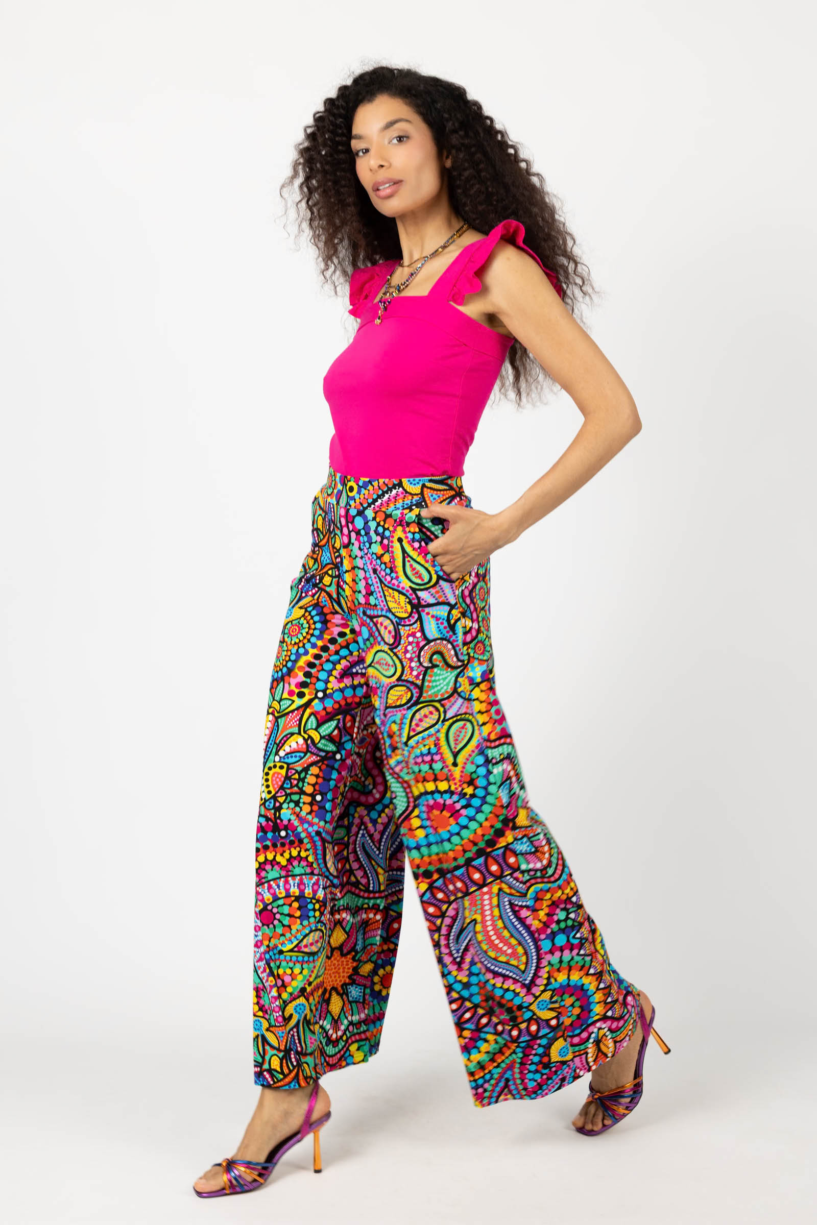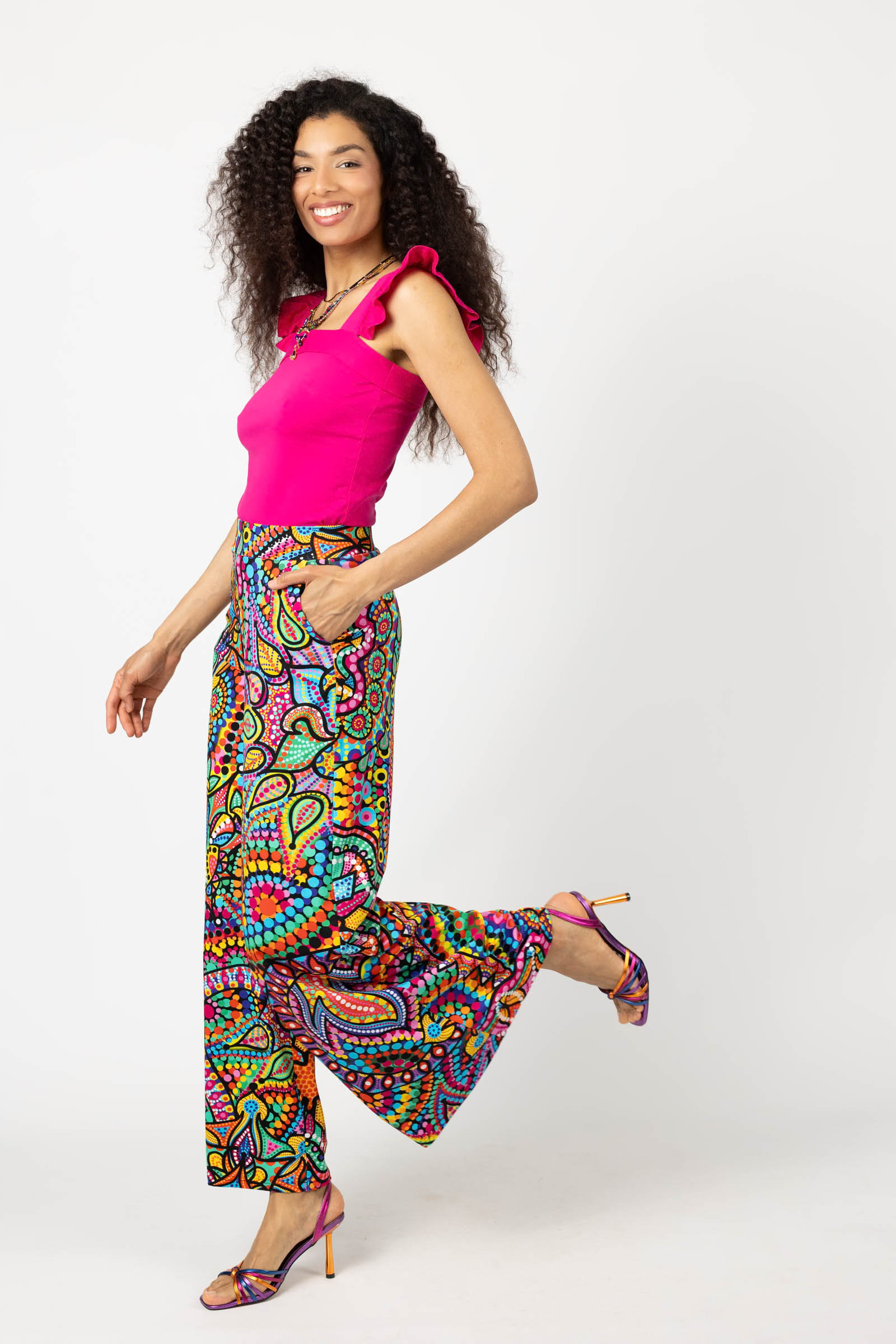Top różowy na szerokie ramiączka z falbankami "BASIC"