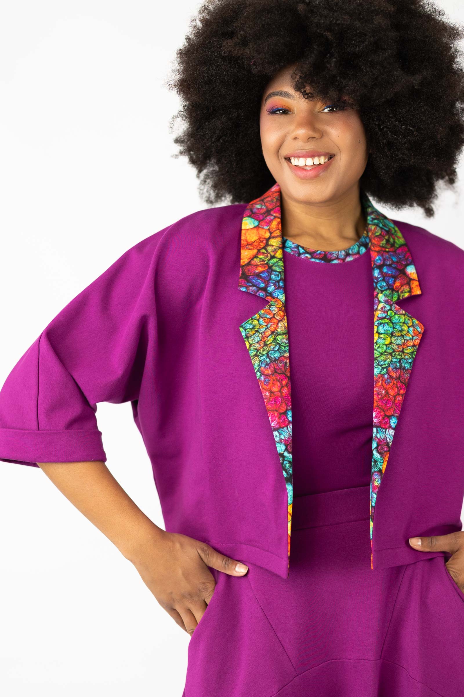 Żakiet luźny cyklamenowy "SHINY" INNY ODCIEŃ